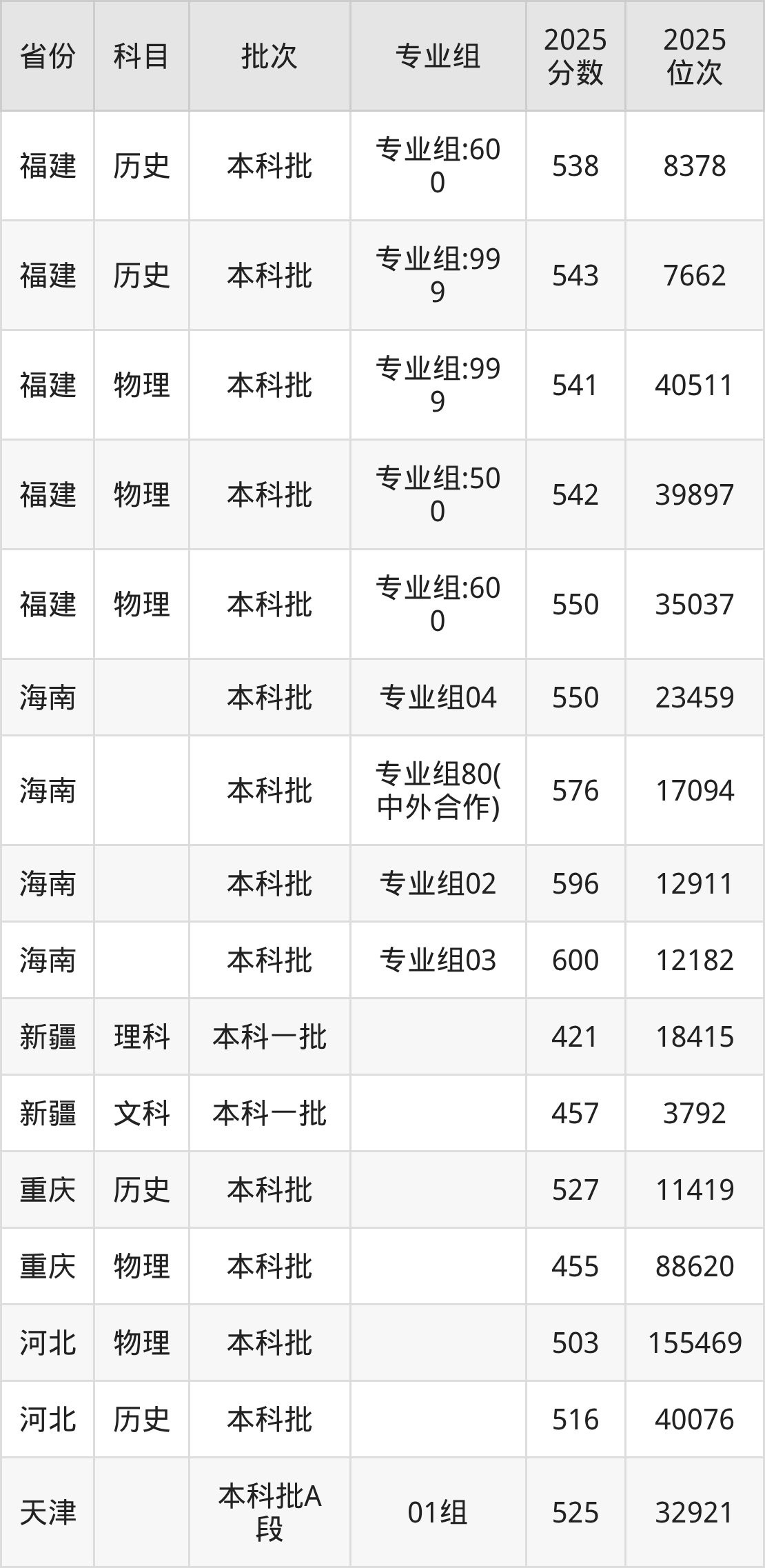 福建农林大学第05组:2025年投档录取最低分为538分,录取最低位次为53992名。