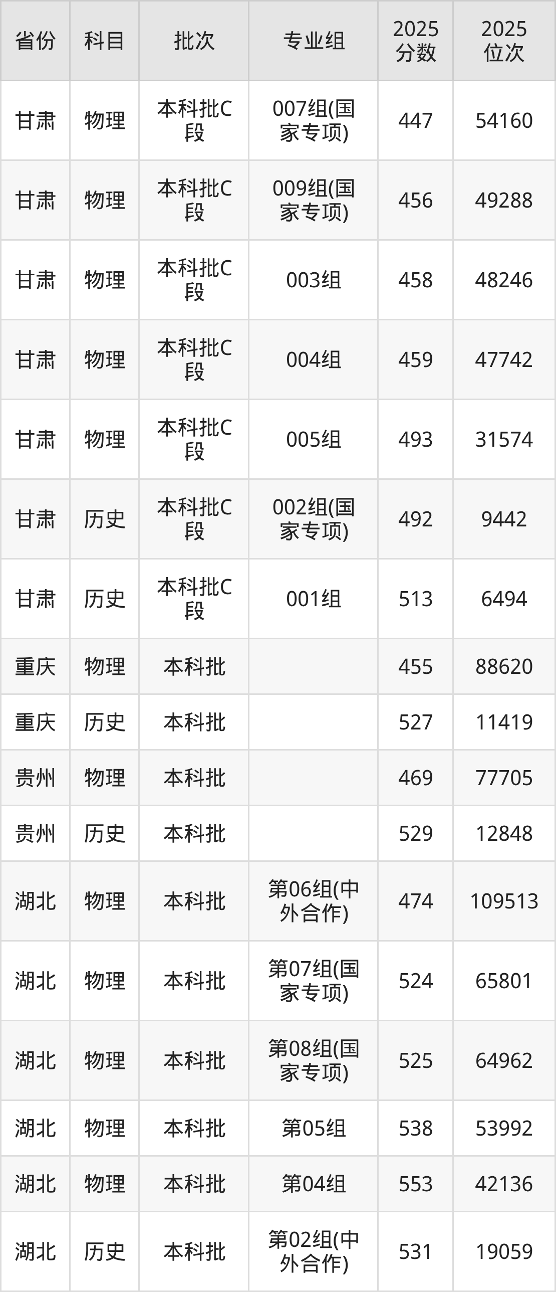 普通类本科物理类最低447分,本科历史类最低492分