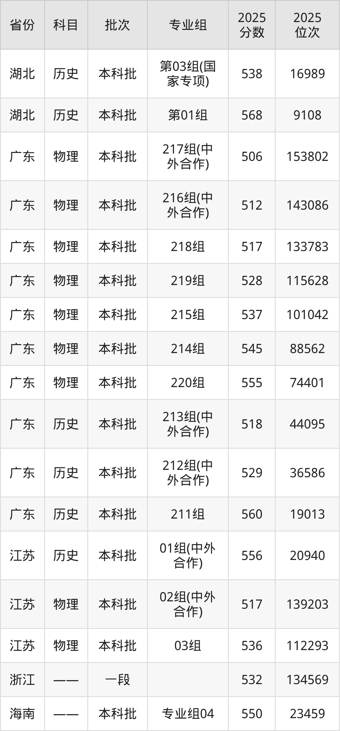 普通类本科历史类最低556分,本科物理类最低517分