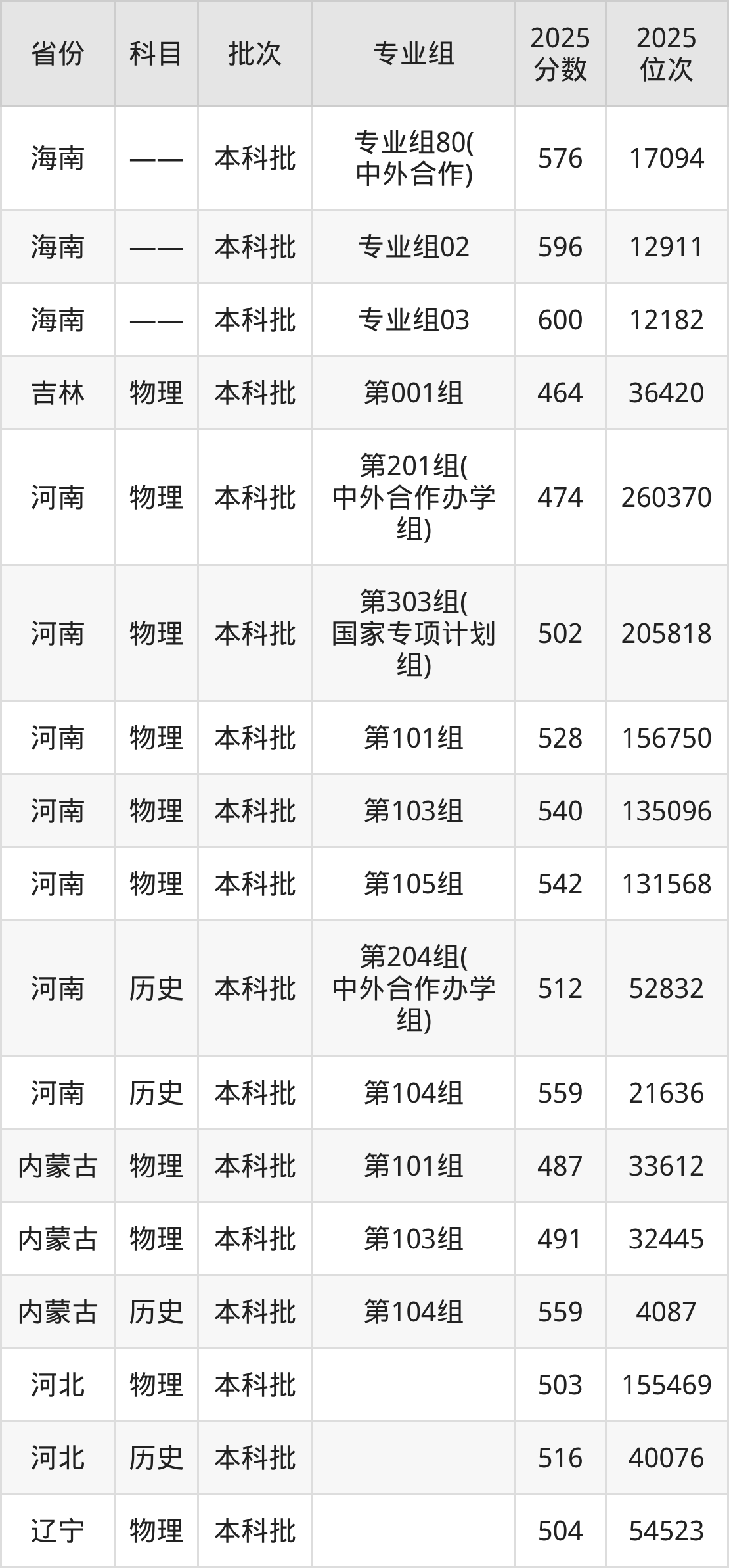 普通类本科物理类最低506分,本科历史类最低518分