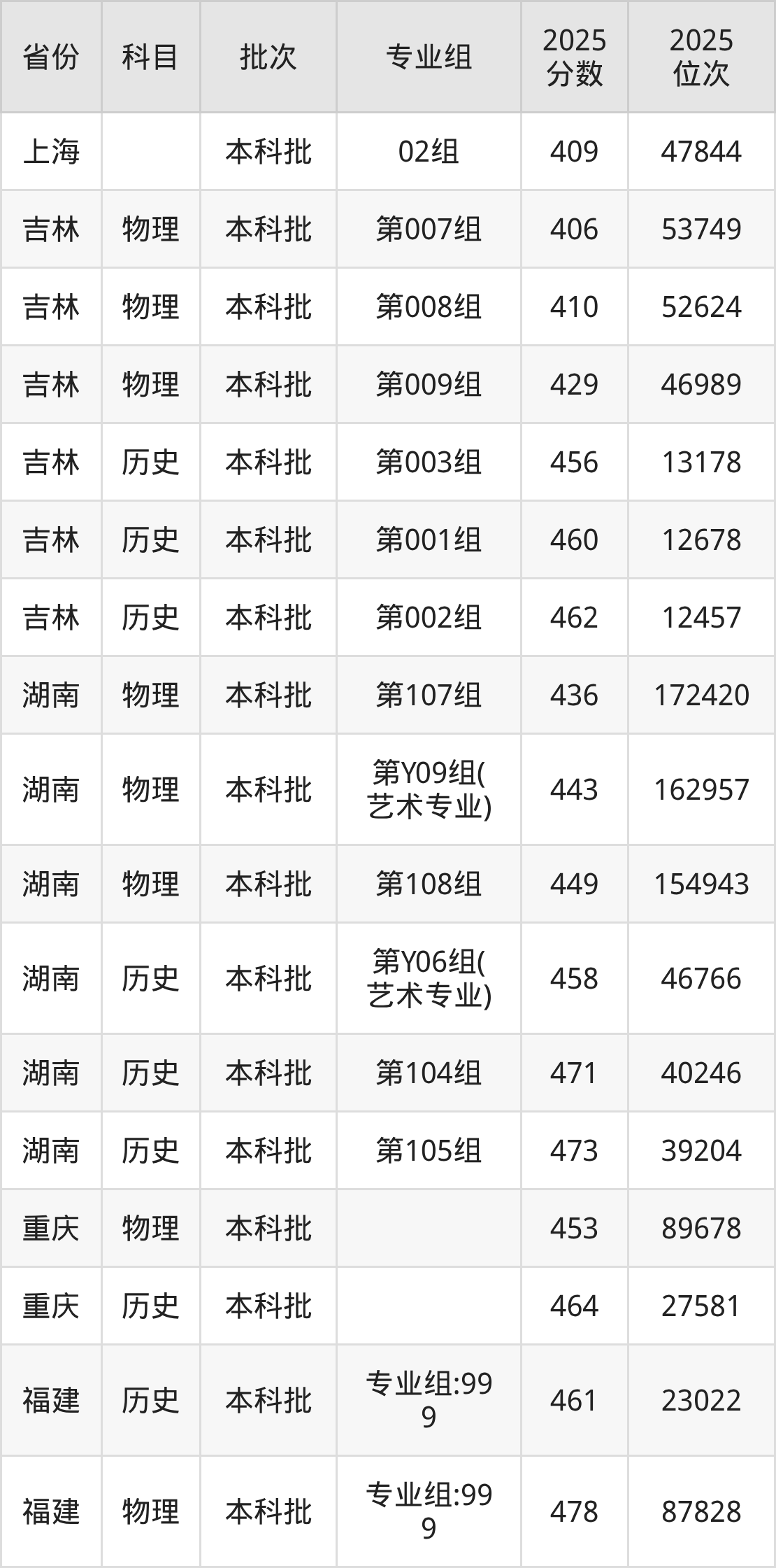 2025年投档录取最低分为281分,录取最低位次为43928名。