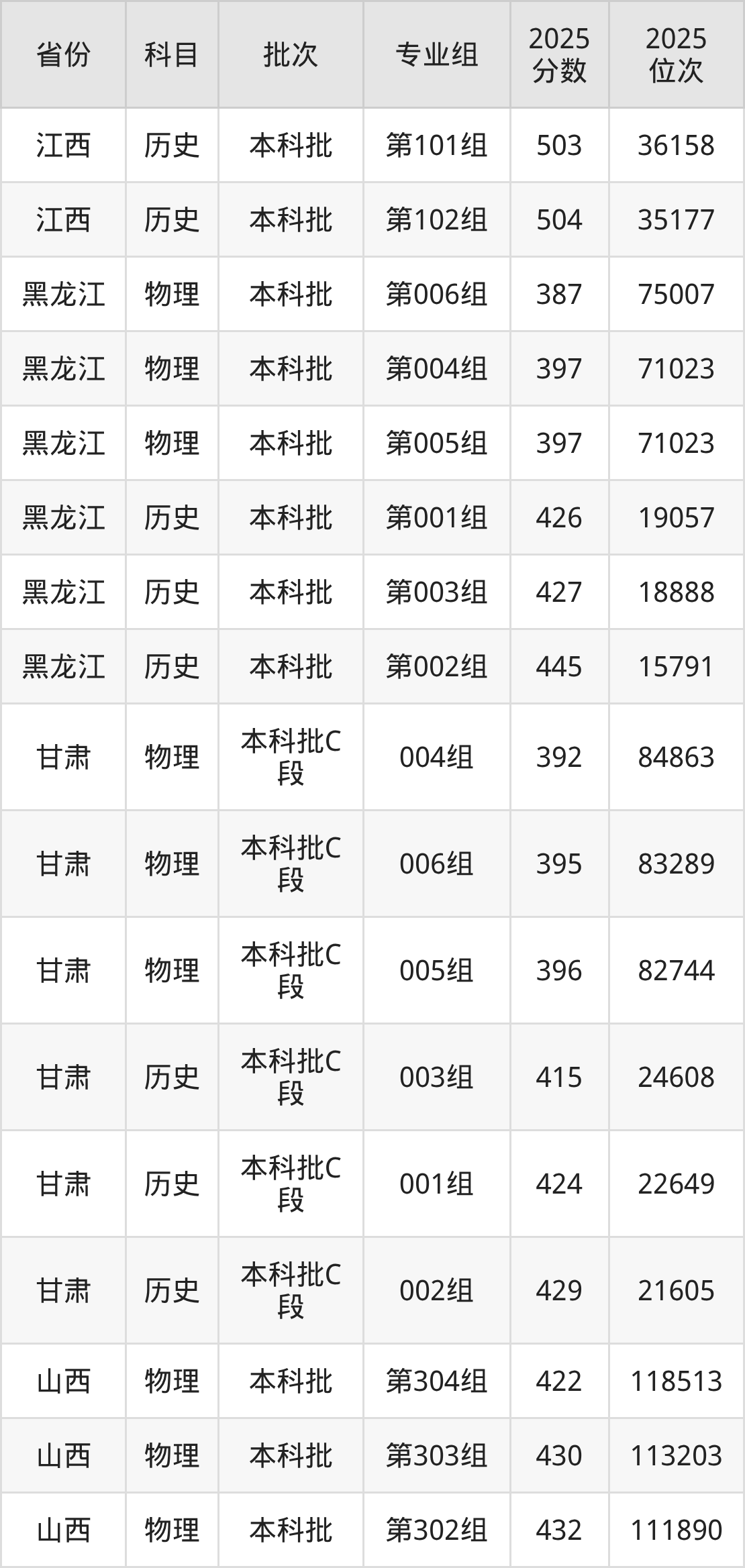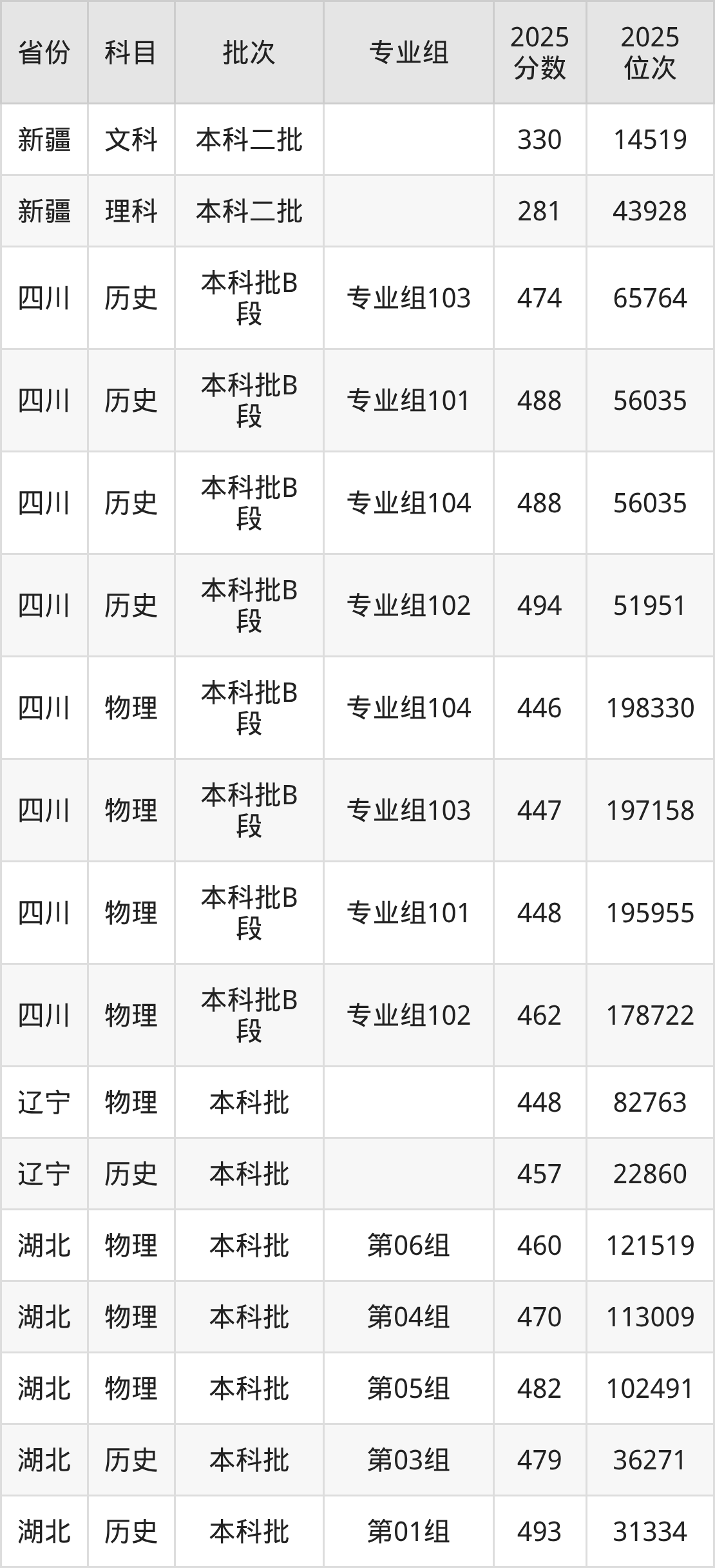 2025年投档录取最低分为330分,录取最低位次为14519名。