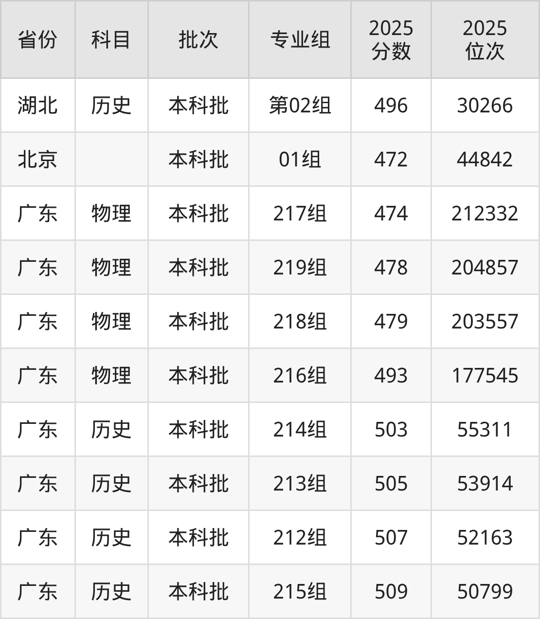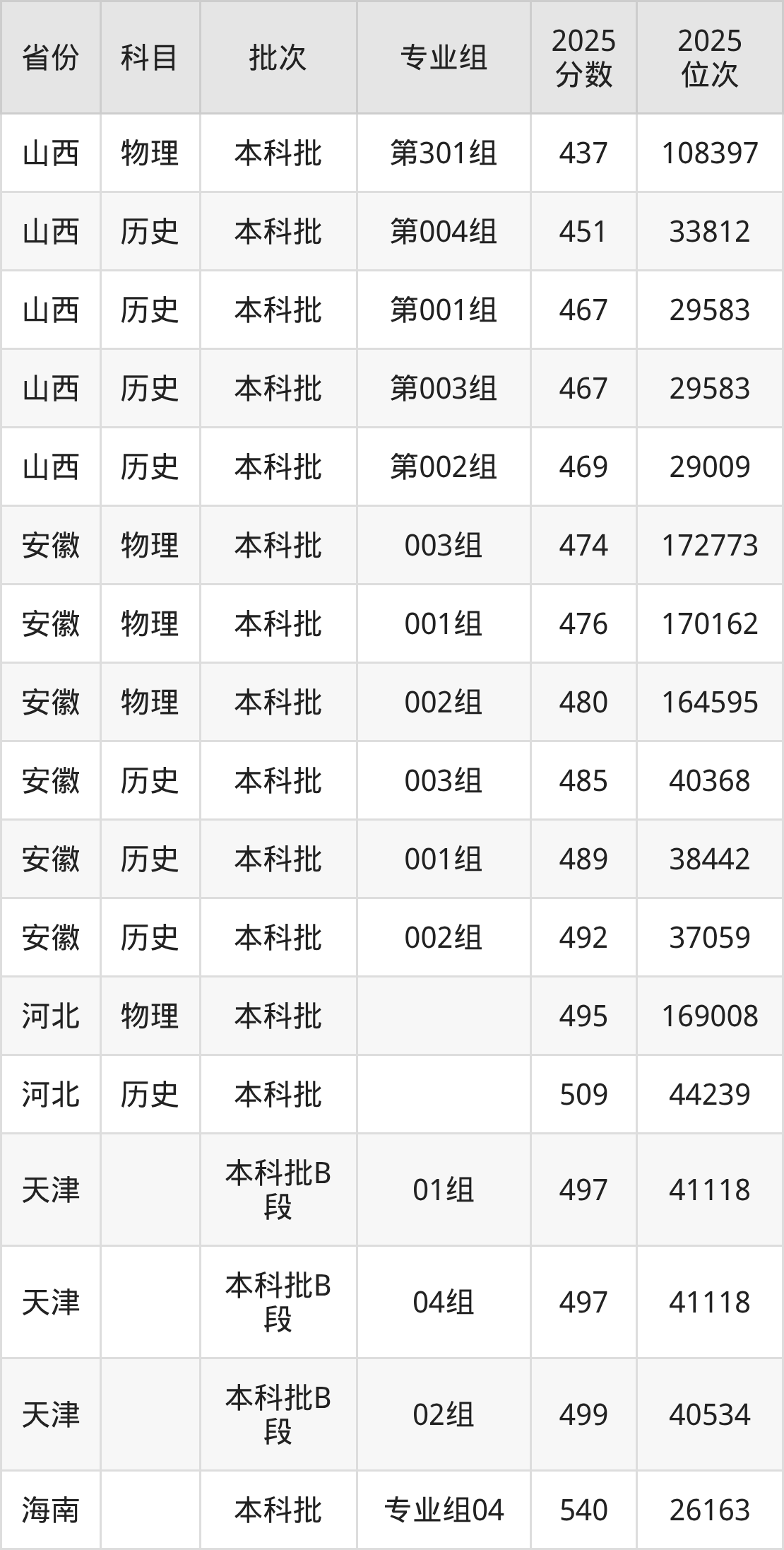 天津商业大学宝德学院002组:2025年投档录取最低分为480分,录取最低位次为164595名。
