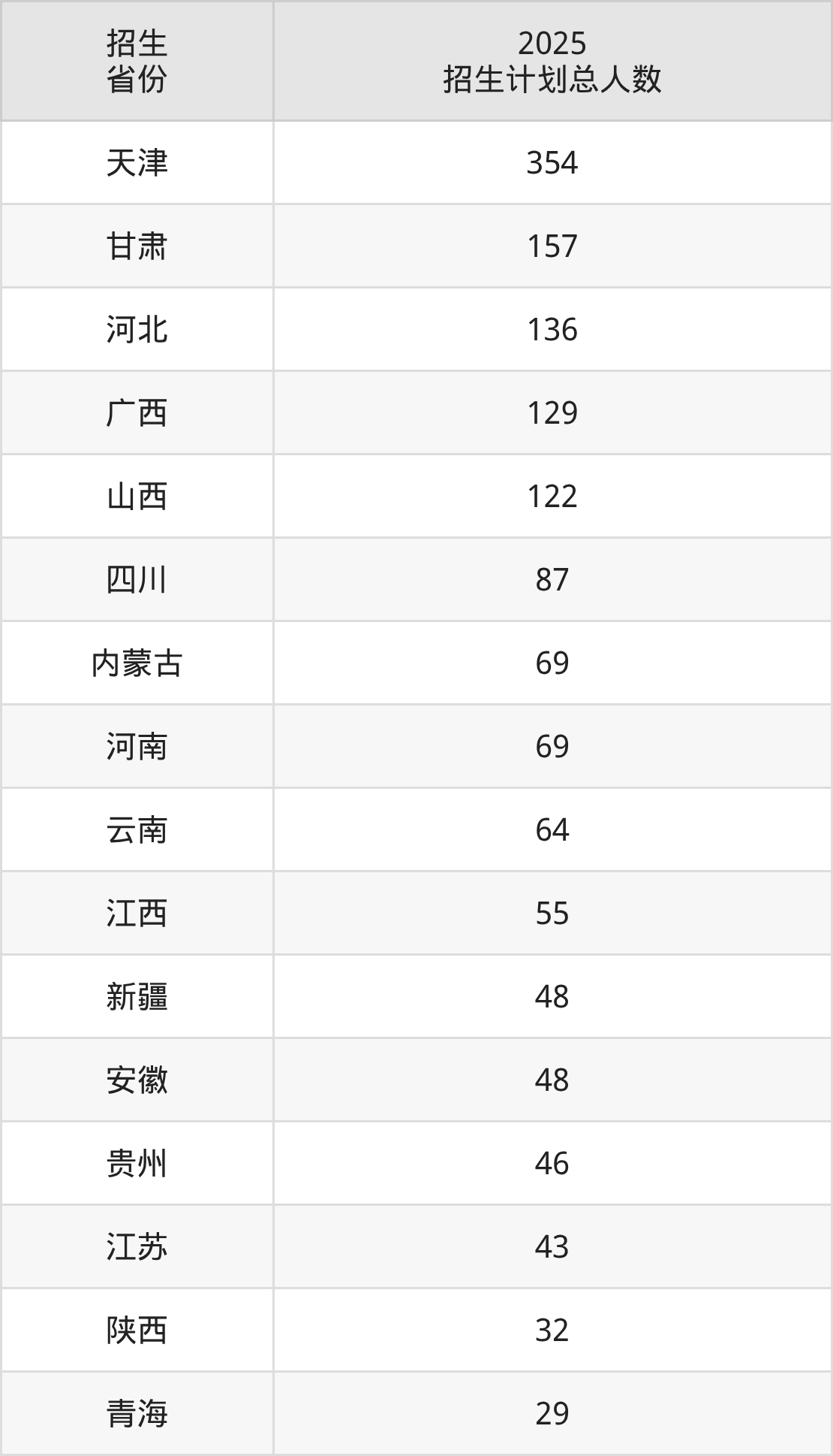 2025年天津商业大学宝德学院面向全国28个省市开展本科招生;招生专业共14个,招生人数共1664人。2025年在天津市招生计划总人数是354人,其中,天津商业大学宝德学院在天津市招生人数最多的是工商管理类。天津商业大学宝德学院在各省具体招生人数情况如下表。