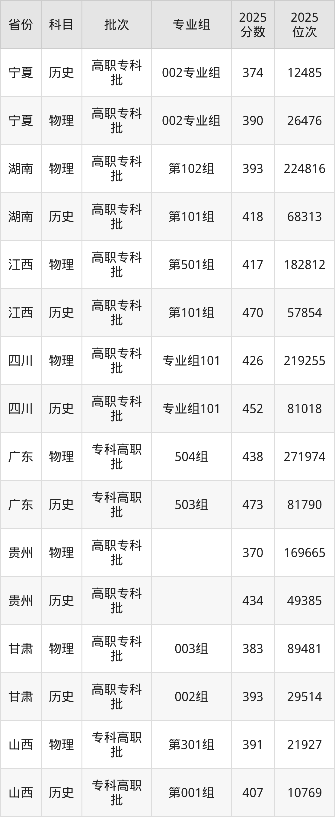 下面是2025年河南推拿职业学院全国录取分数线一览表,请查阅。