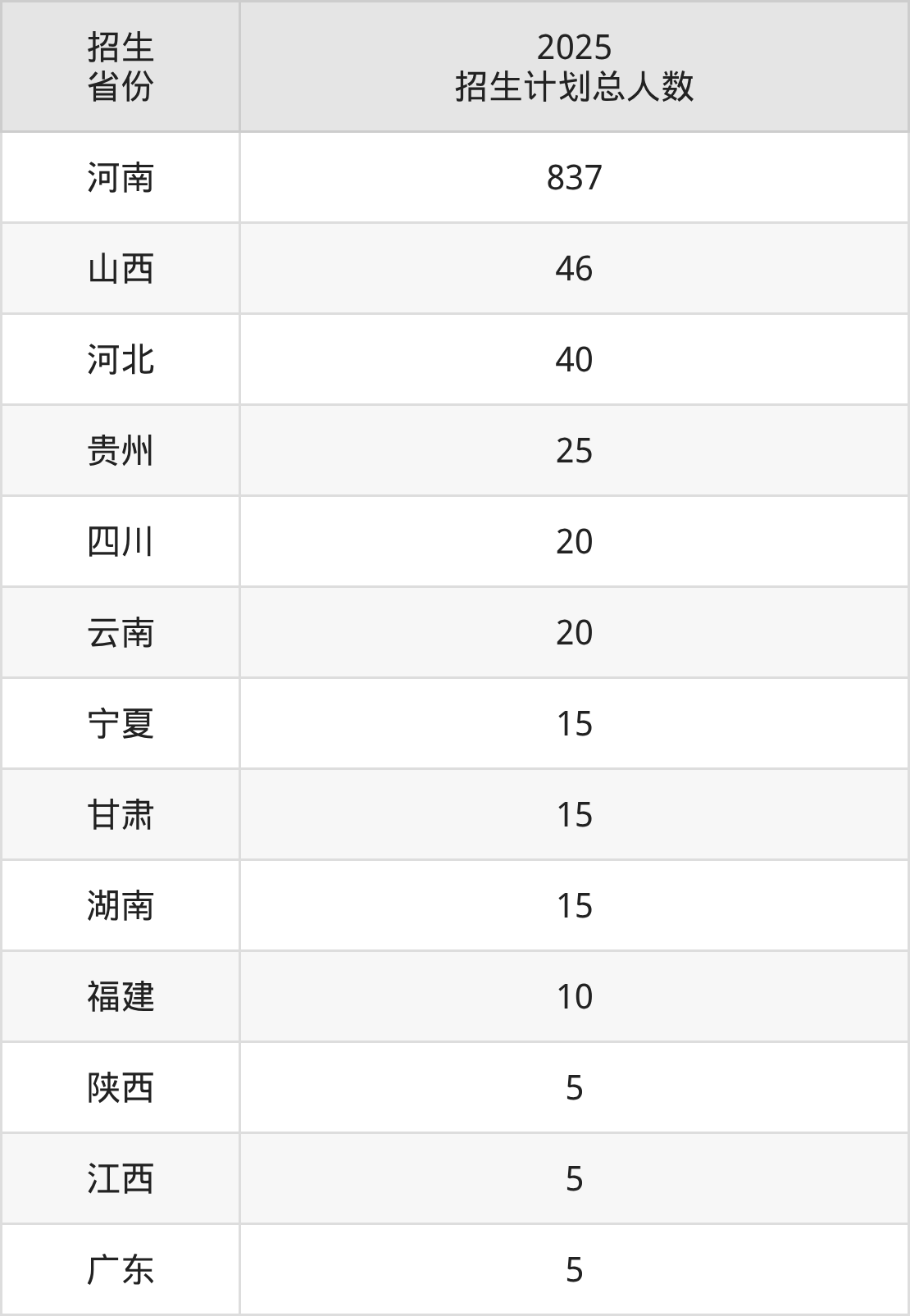2025年河南推拿职业学院面向全国13个省市开展专科招生;招生专业共11个,招生人数共1058人。2025年在河南省招生计划总人数是837人,其中,河南推拿职业学院在河南省招生人数最多的是护理。河南推拿职业学院在各省具体招生人数情况如下表。