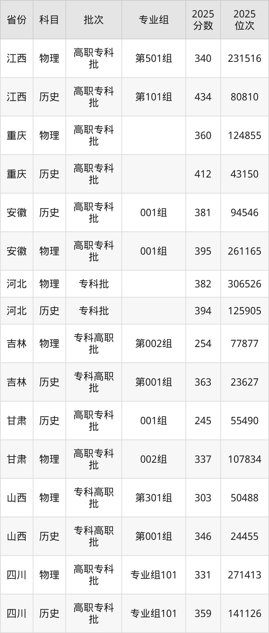 邯郸职业技术学院专业组101:2025年投档录取最低分为331分,录取最低位次为271413名。