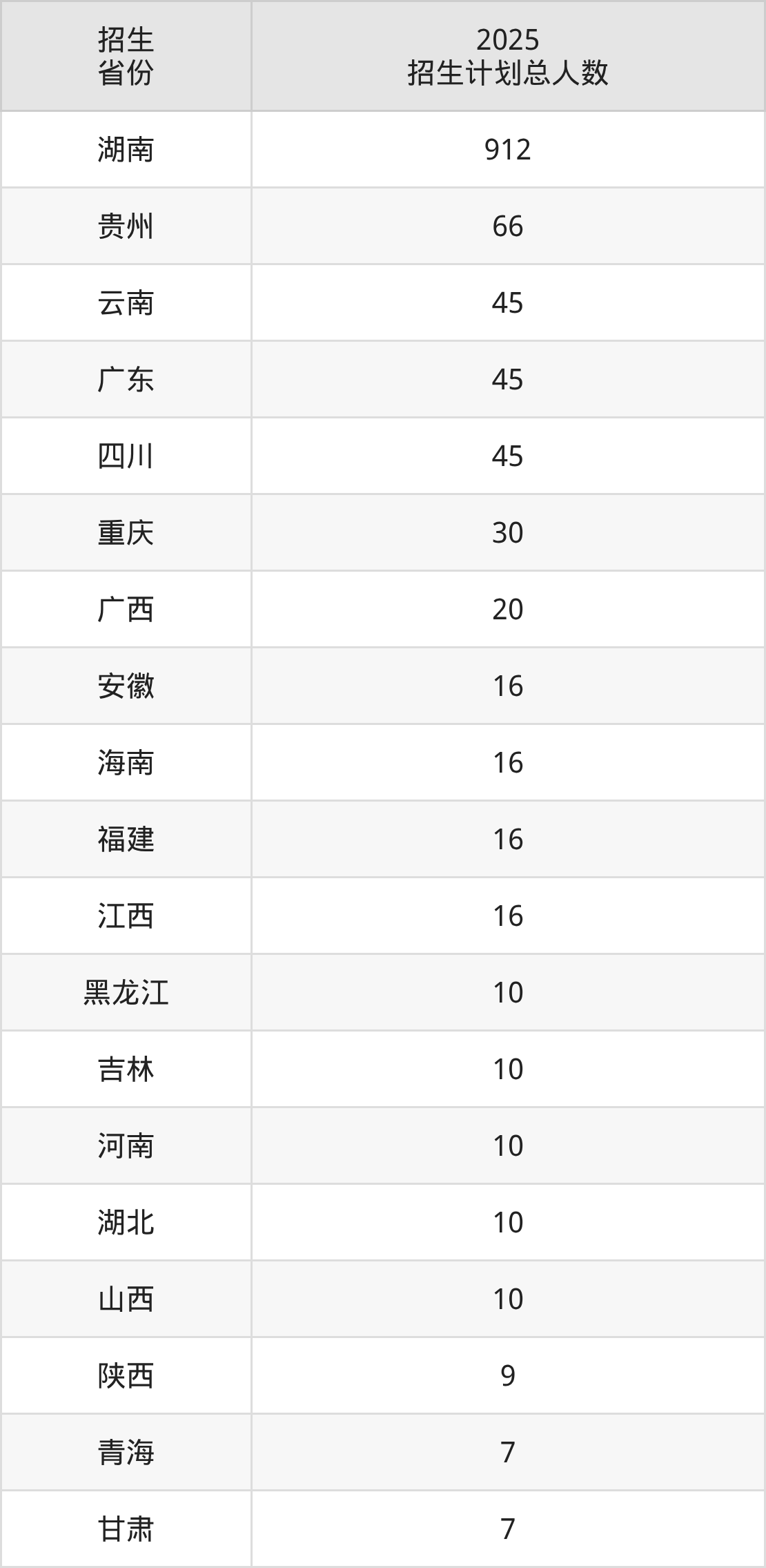 2025年长沙卫生职业学院面向全国19个省市开展专科招生;招生专业共18个,招生人数共1300人。2025年在湖南省招生计划总人数是912人,其中,长沙卫生职业学院在湖南省招生人数最多的是临床医学。长沙卫生职业学院在各省具体招生人数情况如下表。