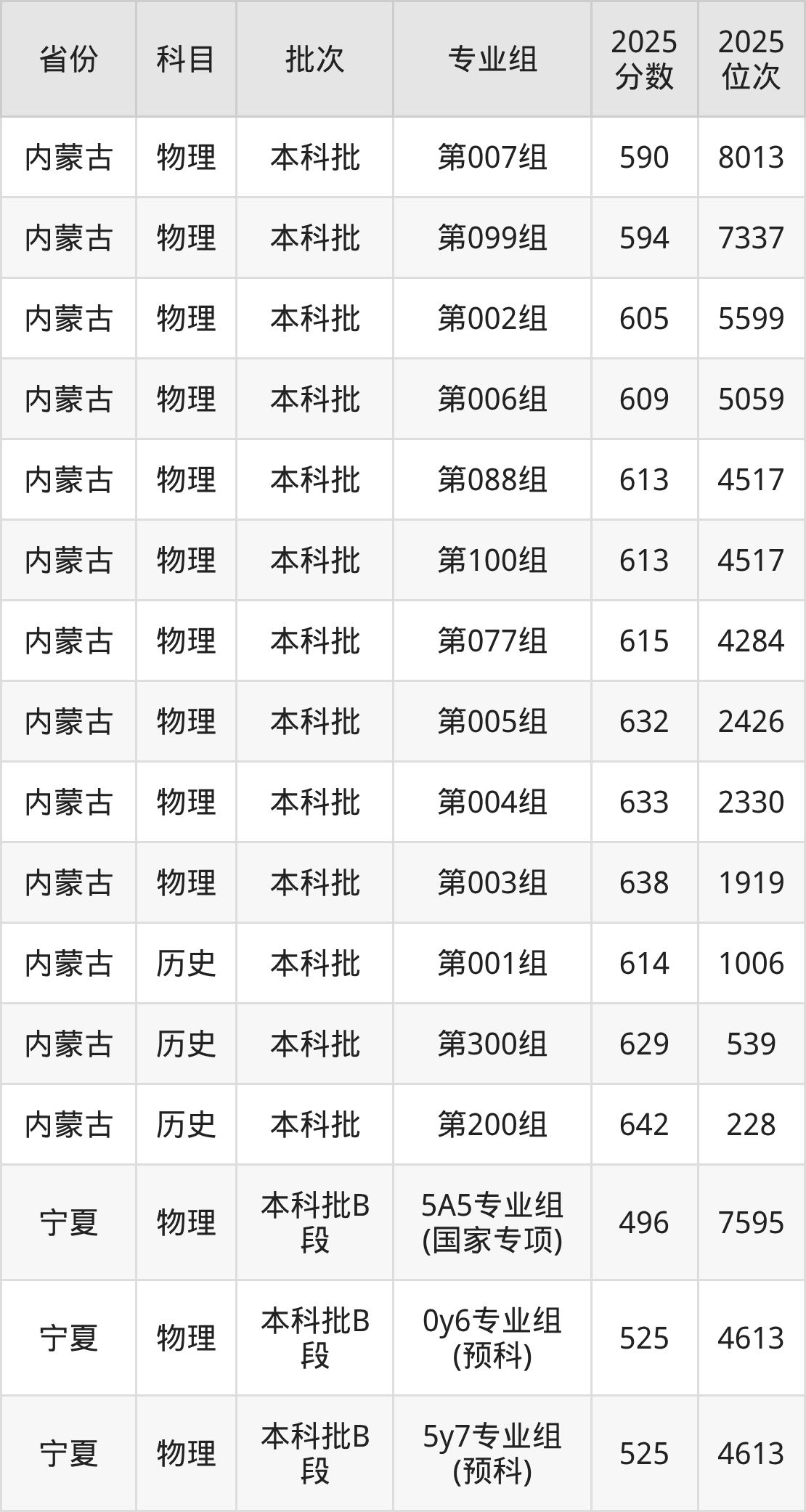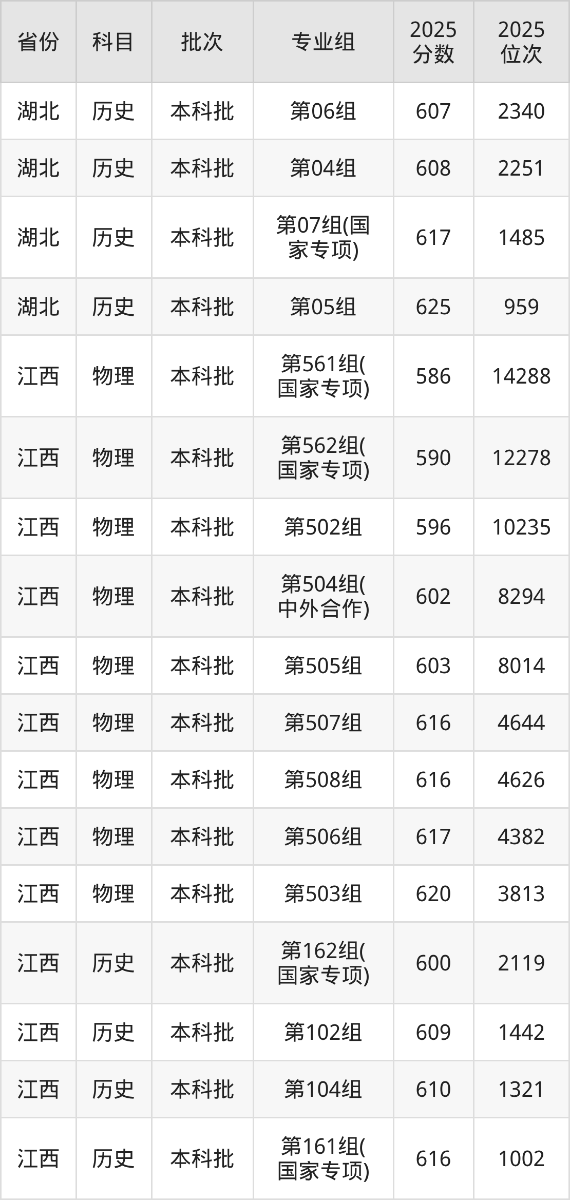 吉林大学008专业组(国家专项计划):2025年投档录取最低分为606分,录取最低位次为521名。