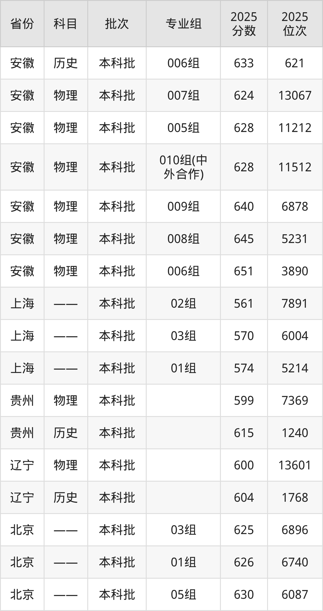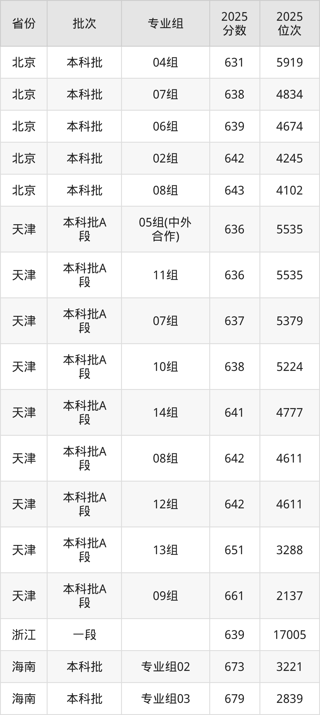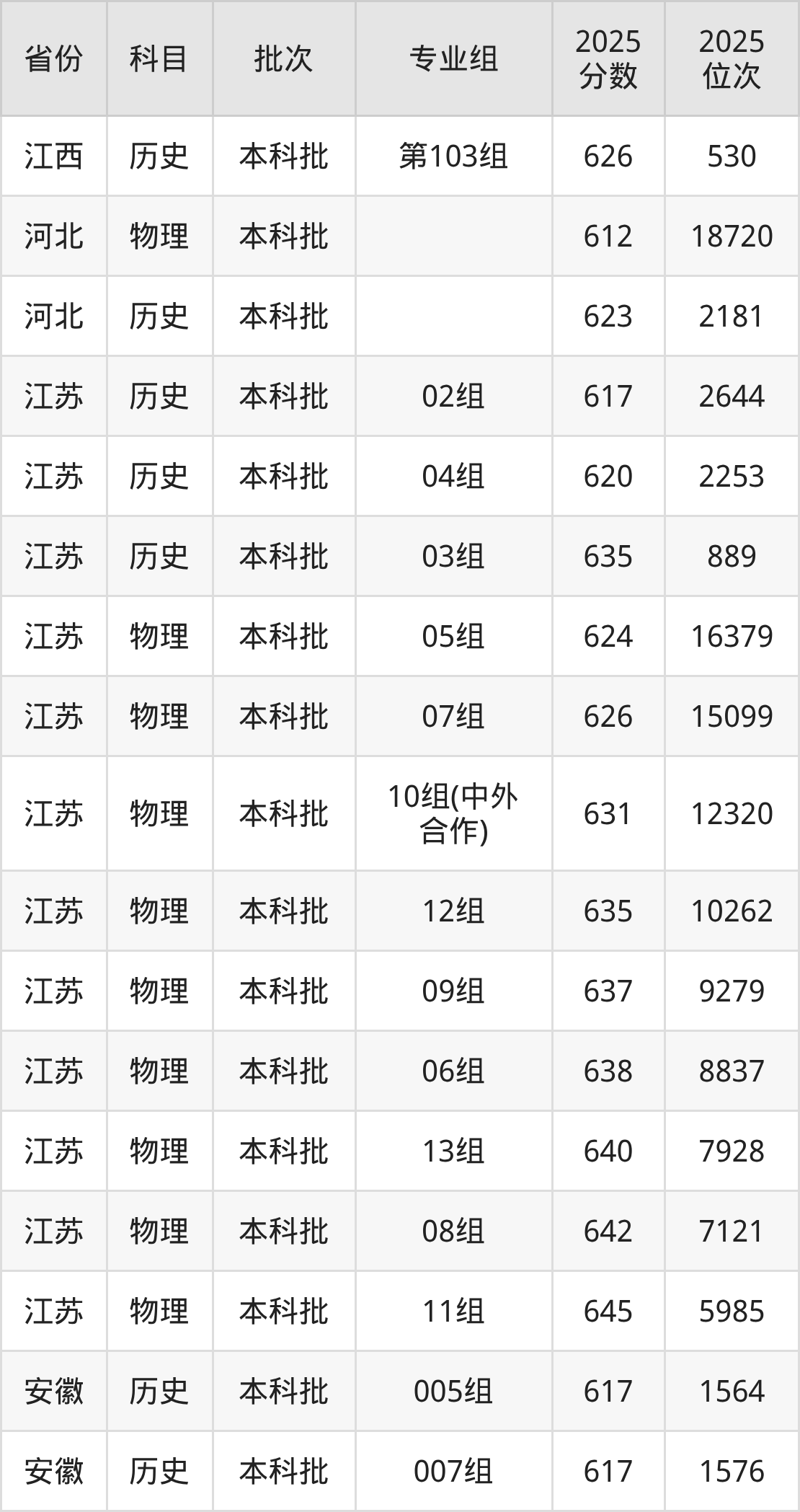 吉林大学05组(中外合作):2025年投档录取最低分为636分。