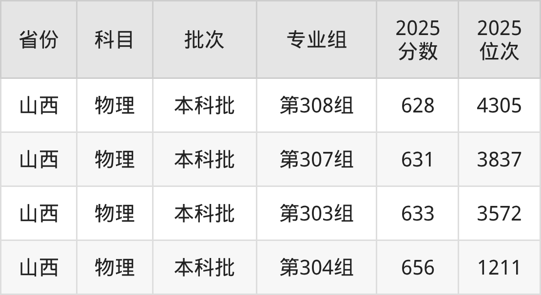吉林大学第308组:2025年投档录取最低分为628分,录取最低位次为4305名。