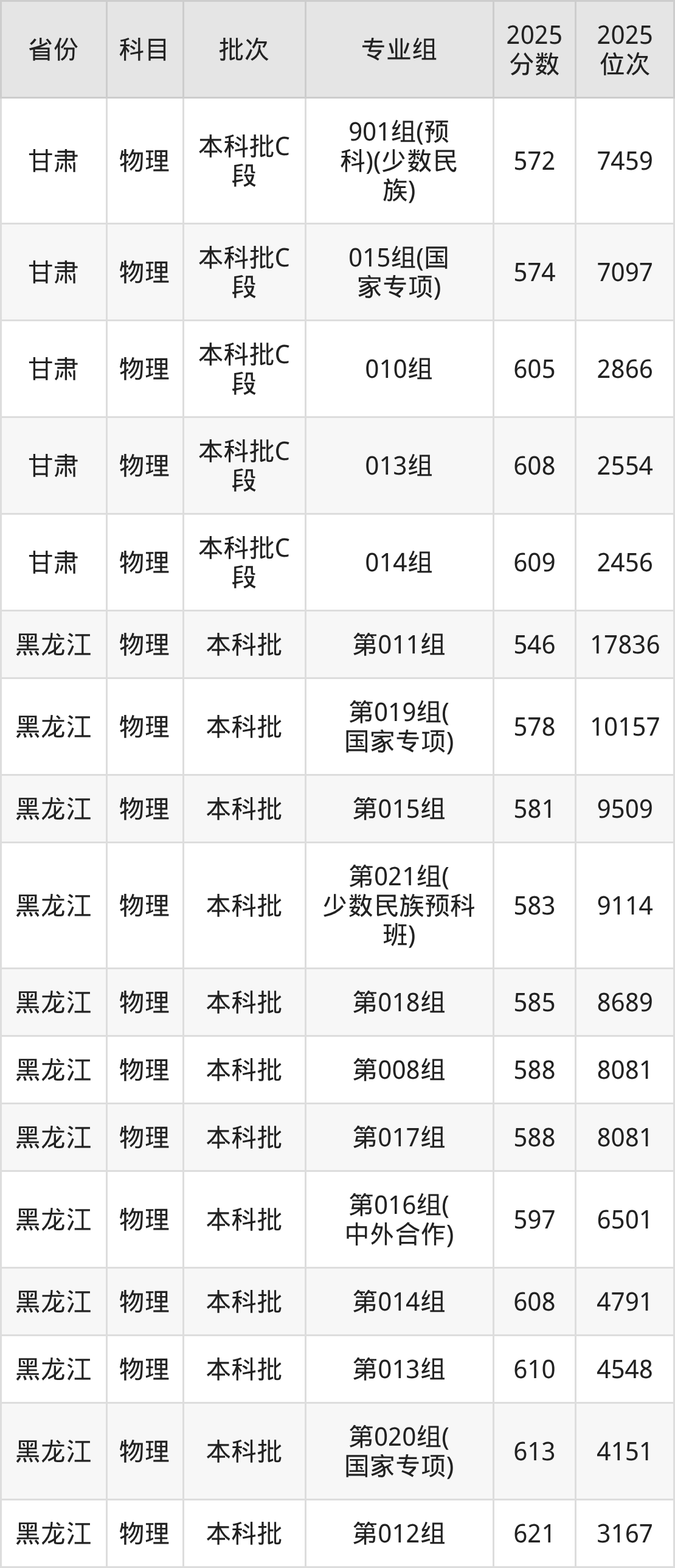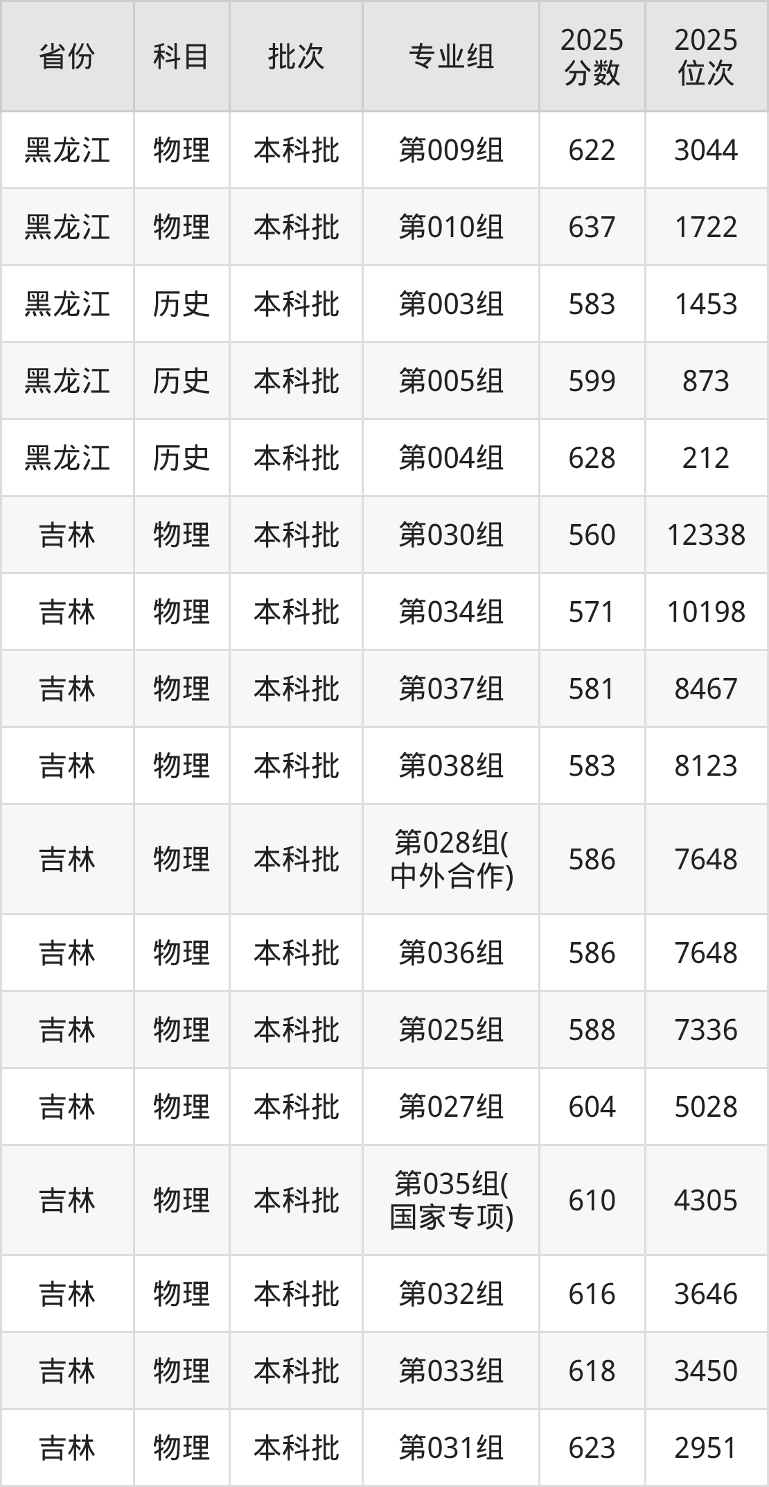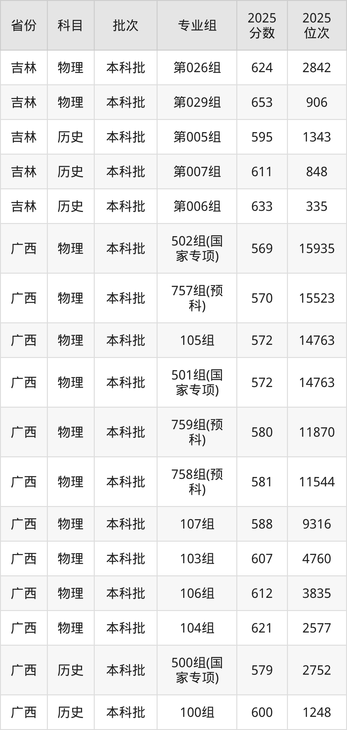 下面是2025年吉林大学全国录取分数线一览表,请查阅。