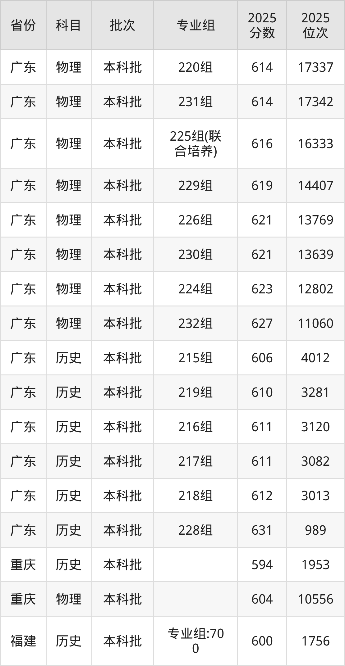 2025年投档录取最低分为600分,录取最低位次为13601名。