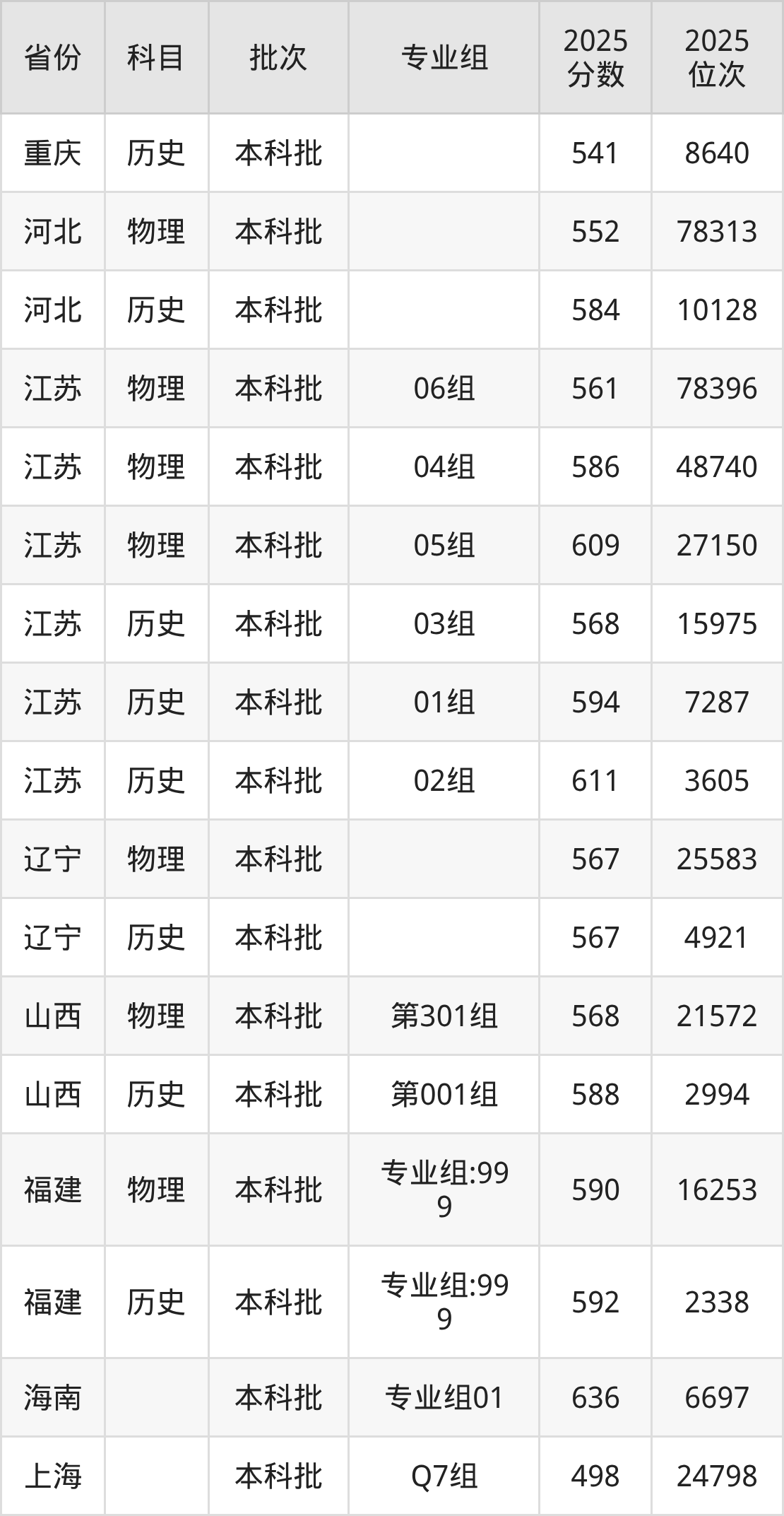 上海政法学院002专业组(国家专项计划):2025年投档录取最低分为560分,录取最低位次为2252名。