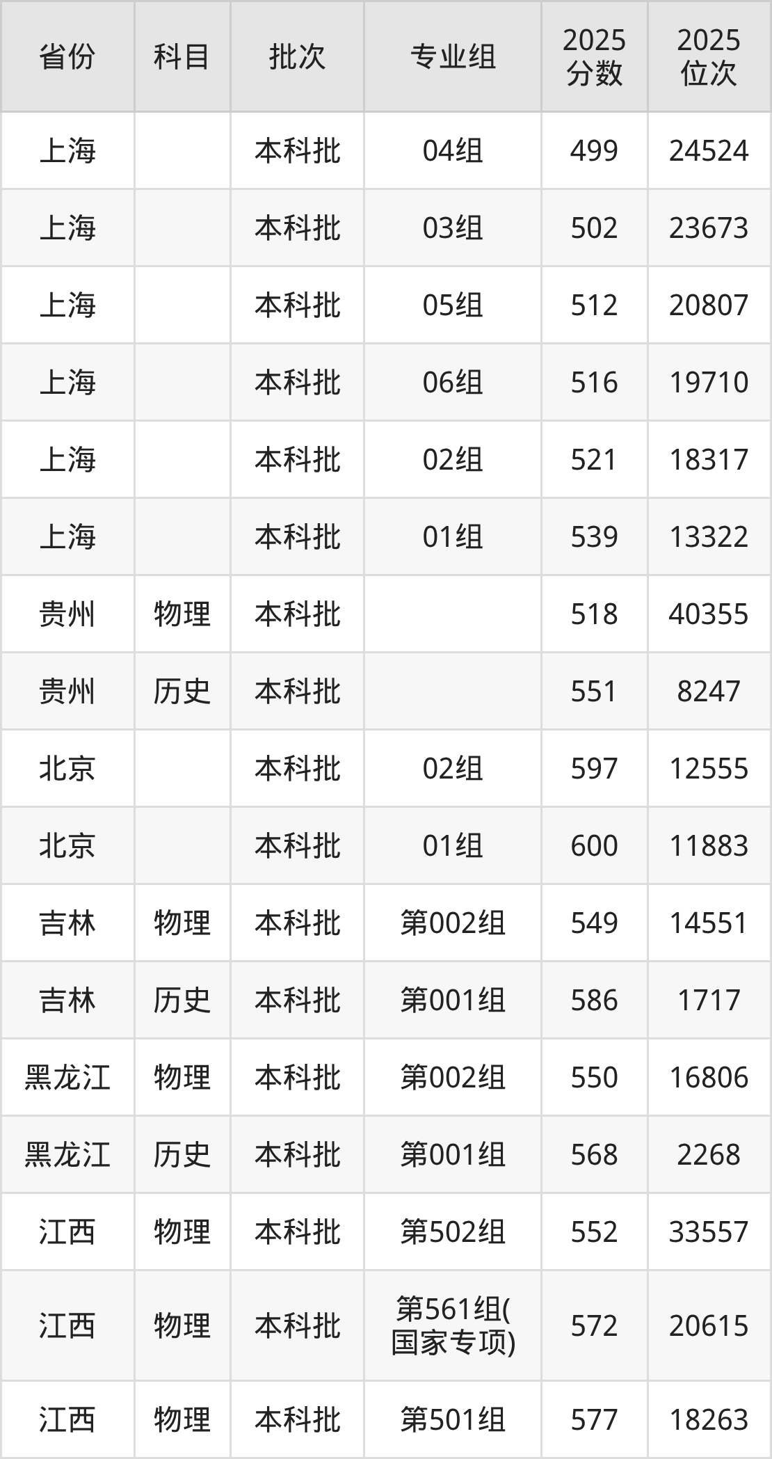 下面是2025年上海政法学院全国录取分数线一览表,请查阅。