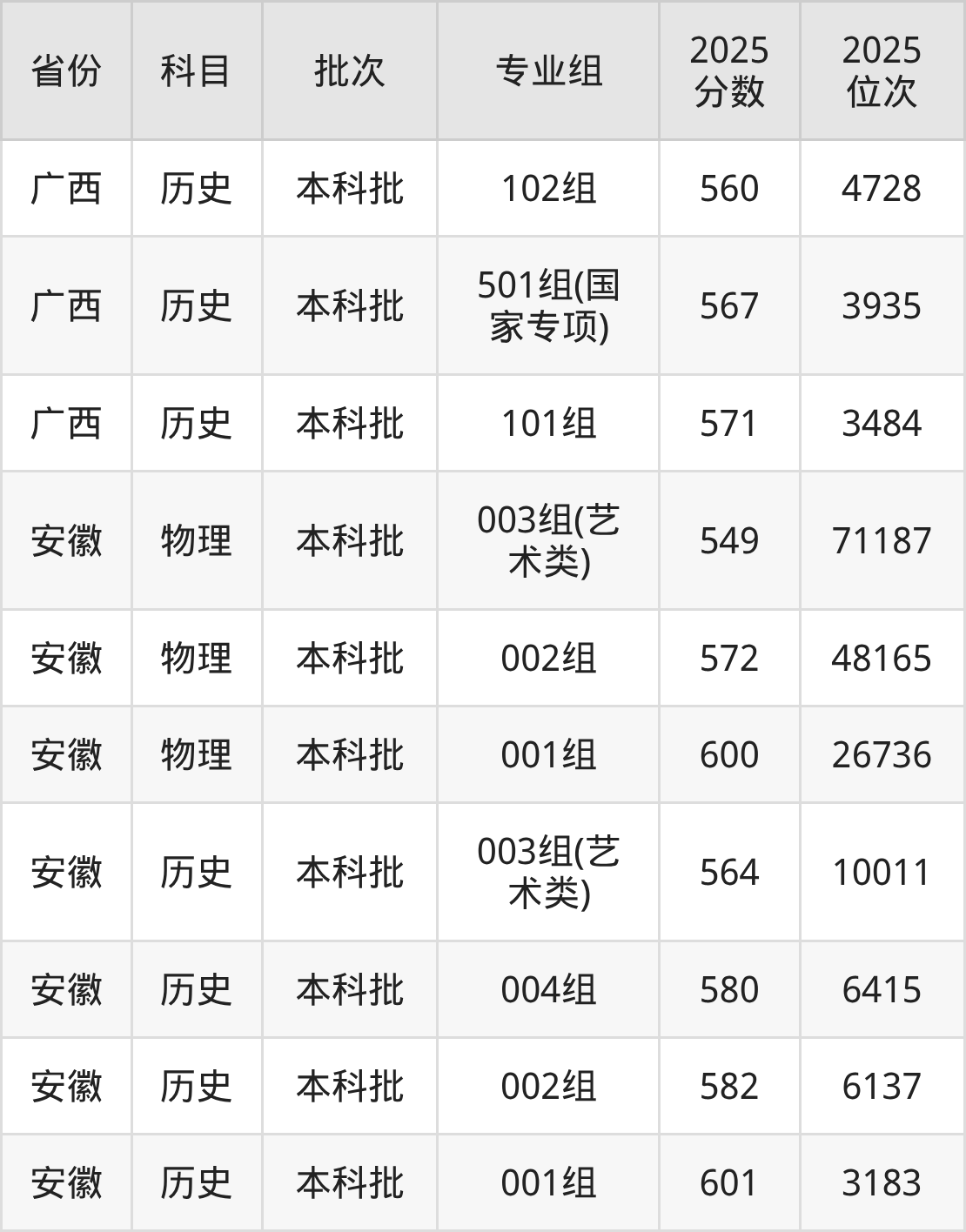 上海政法学院003组(艺术类):2025年投档录取最低分为549分,录取最低位次为71187名。