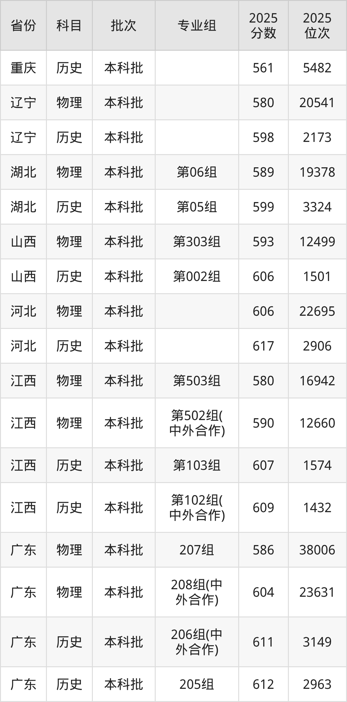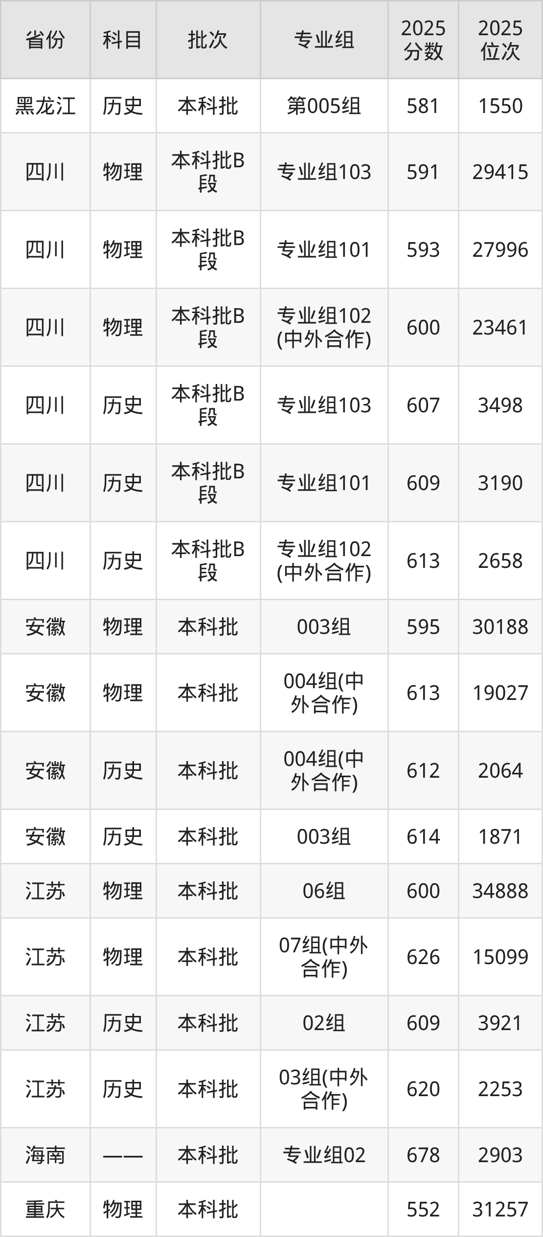 西南政法大学03组(中外合作办学):2025年投档录取最低分为620分,录取最低位次为2253名。