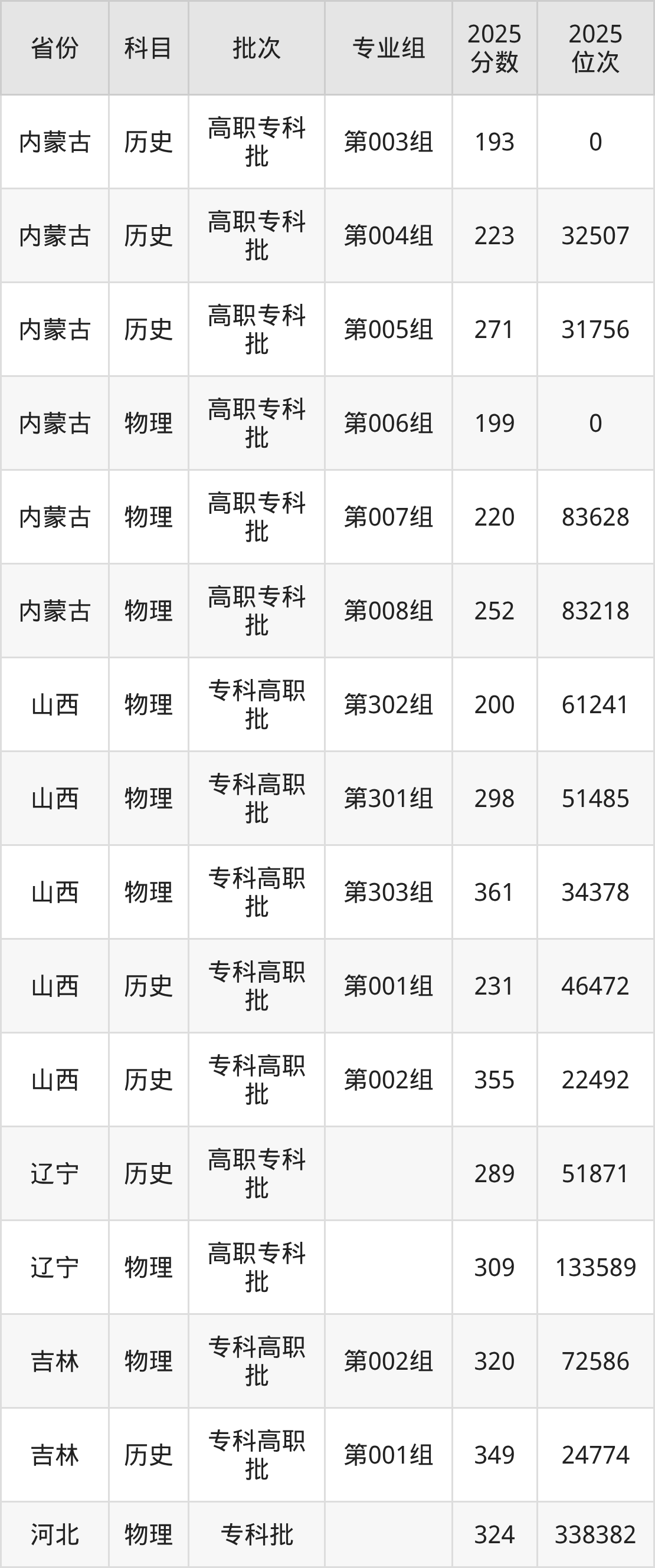 下面是2025年赤峰应用技术职业学院全国录取分数线一览表,请查阅。