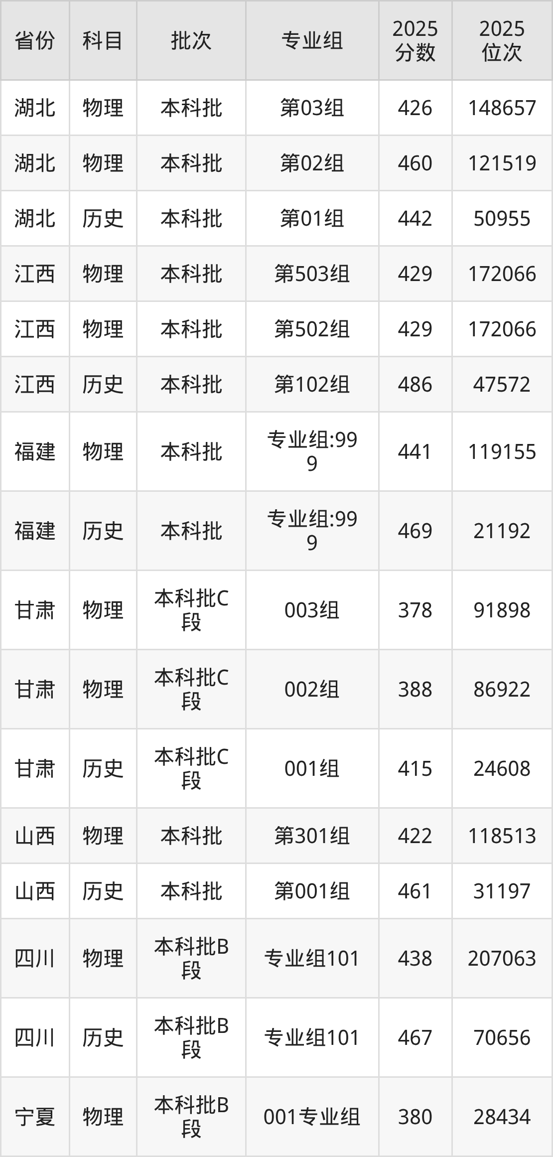 2025年投档录取最低分为437分,录取最低位次为26916名。