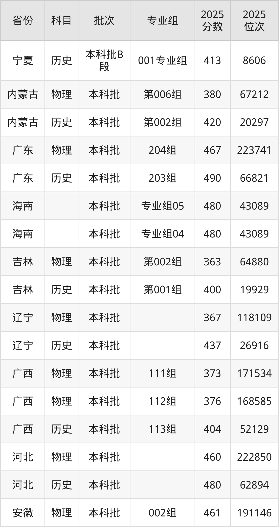 海南科技职业大学第006组:2025年投档录取最低分为380分,录取最低位次为67212名。