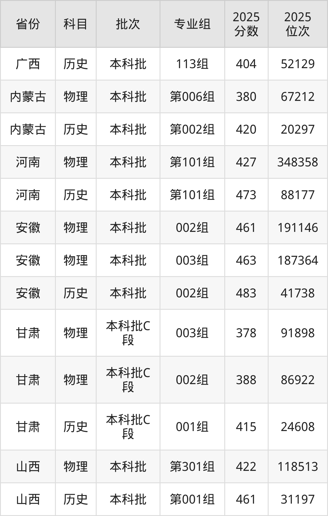 2025年投档录取最低分为387分,录取最低位次为158011名。