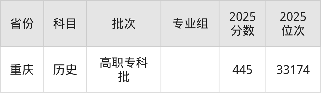 2025年投档录取最低分为445分,录取最低位次为33174名。
