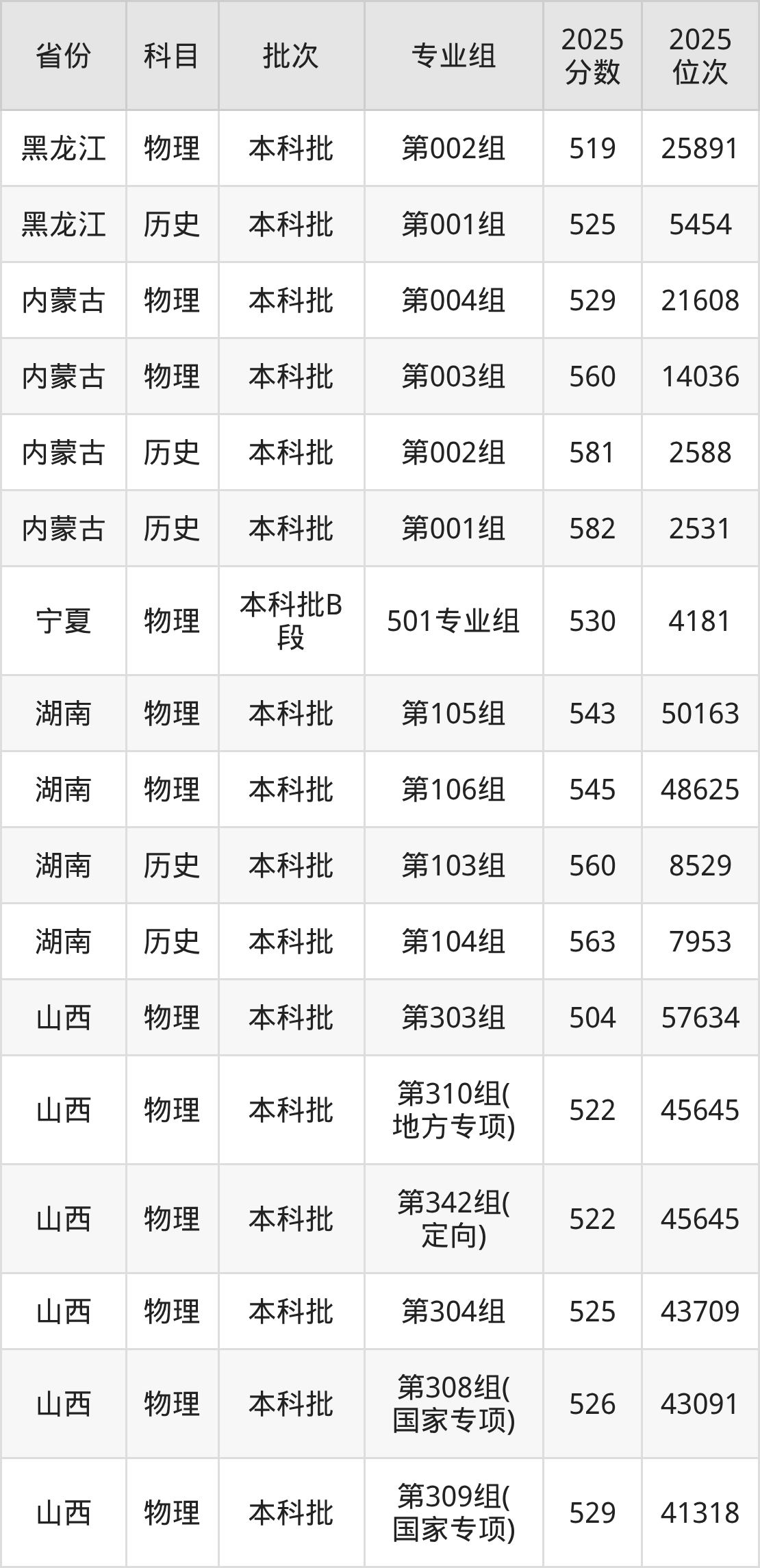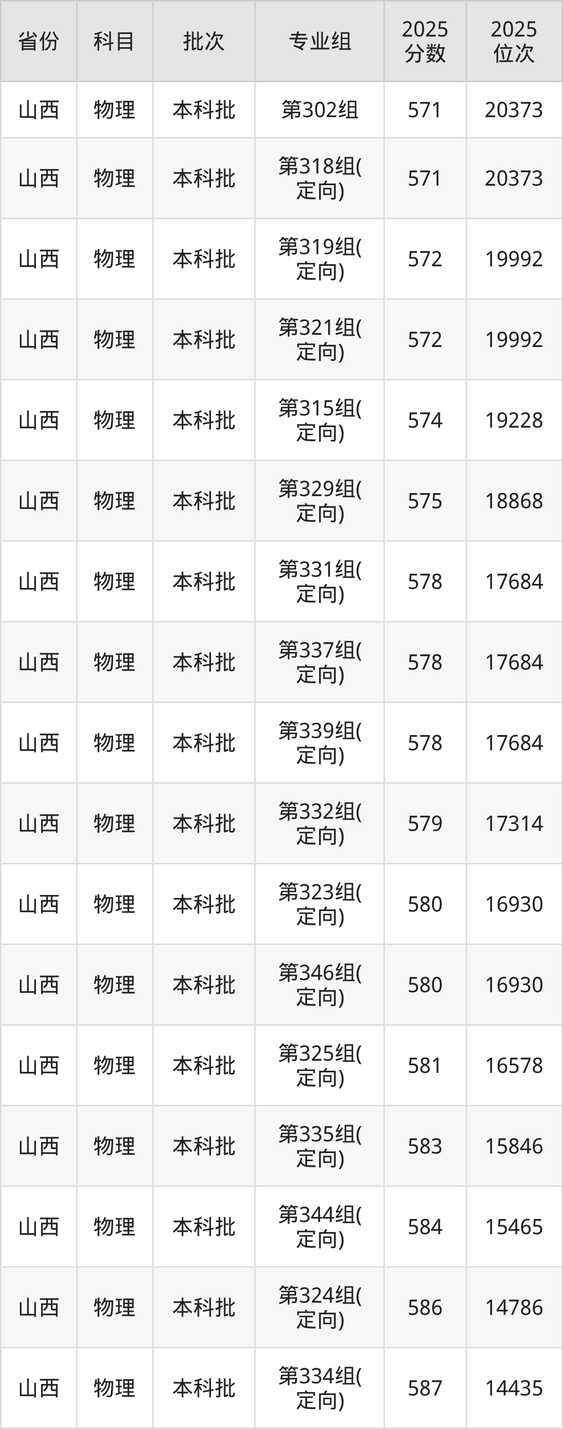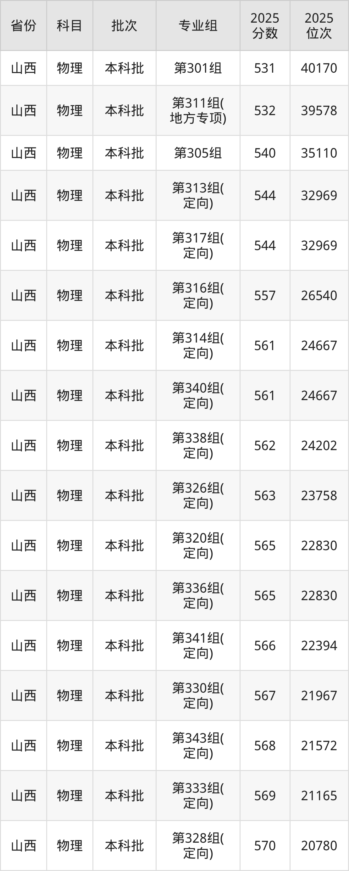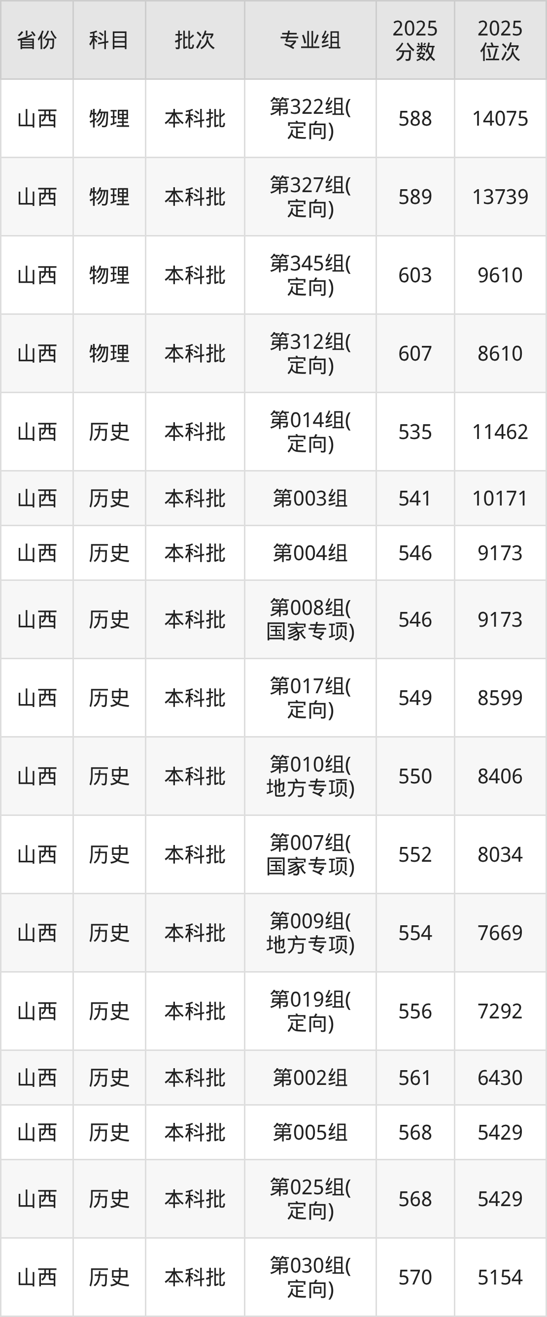 下面是2025年山西大学全国录取分数线一览表,请查阅。