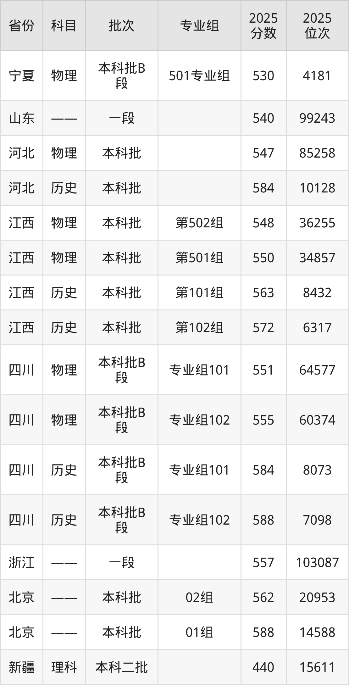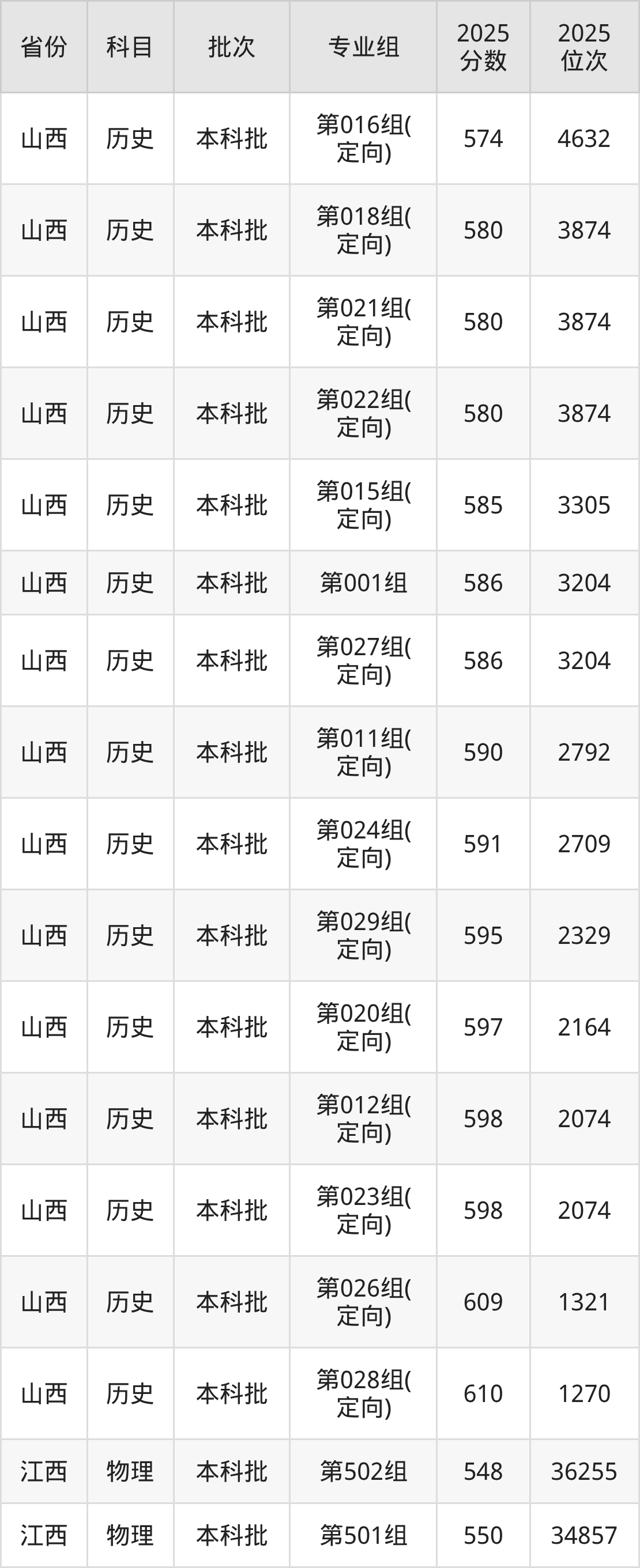 山西大学第010组(地方专项计划):2025年投档录取最低分为550分,录取最低位次为8406名。