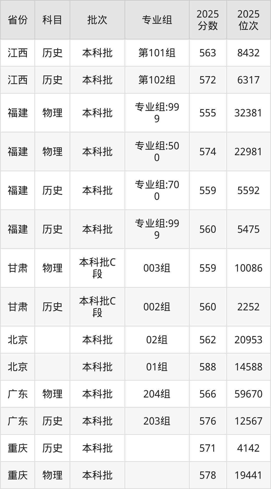 山西大学第101组:2025年投档录取最低分为563分,录取最低位次为8432名。