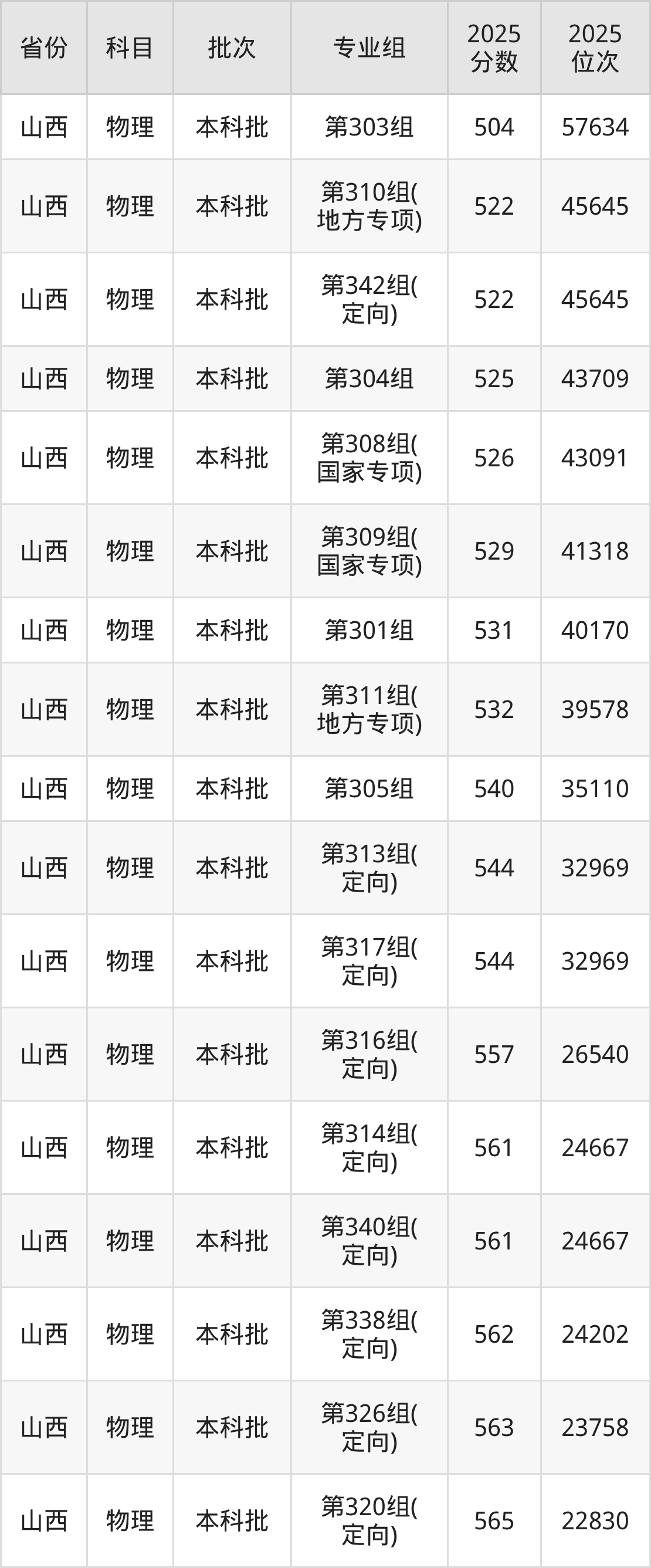 山西大学第342组(定向):2025年投档录取最低分为522分,录取最低位次为45645名。