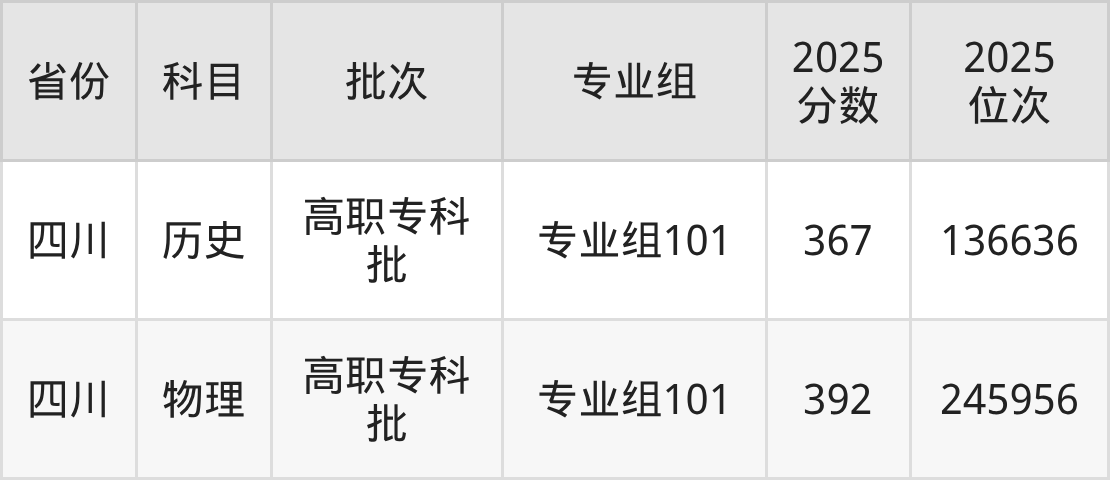 普通类专科物理类最低337分,专科历史类最低382分