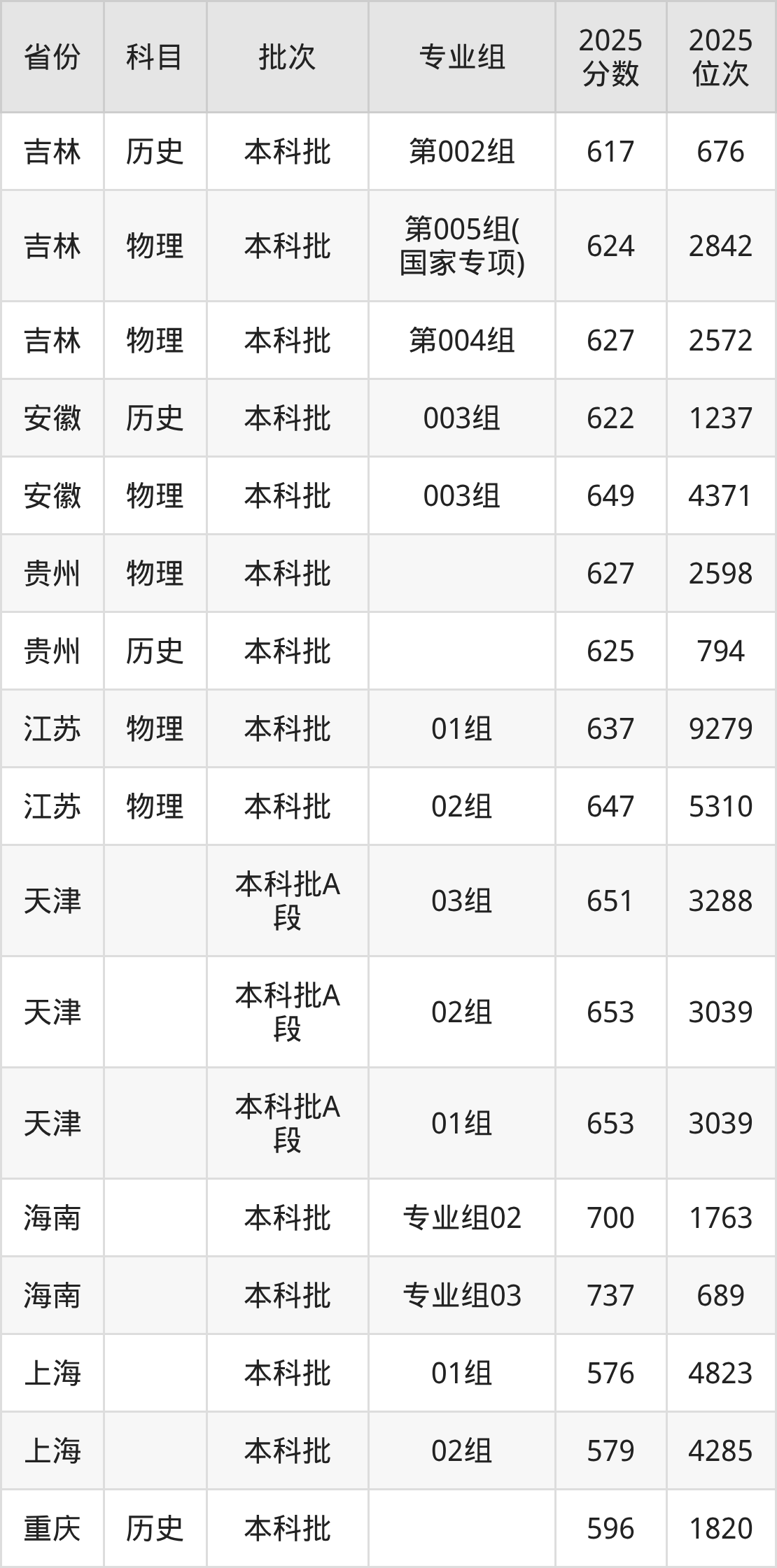 天津大学003组:2025年投档录取最低分为649分,录取最低位次为4371名。