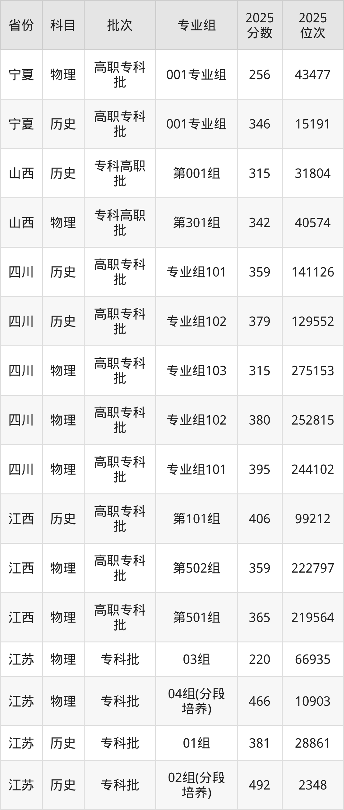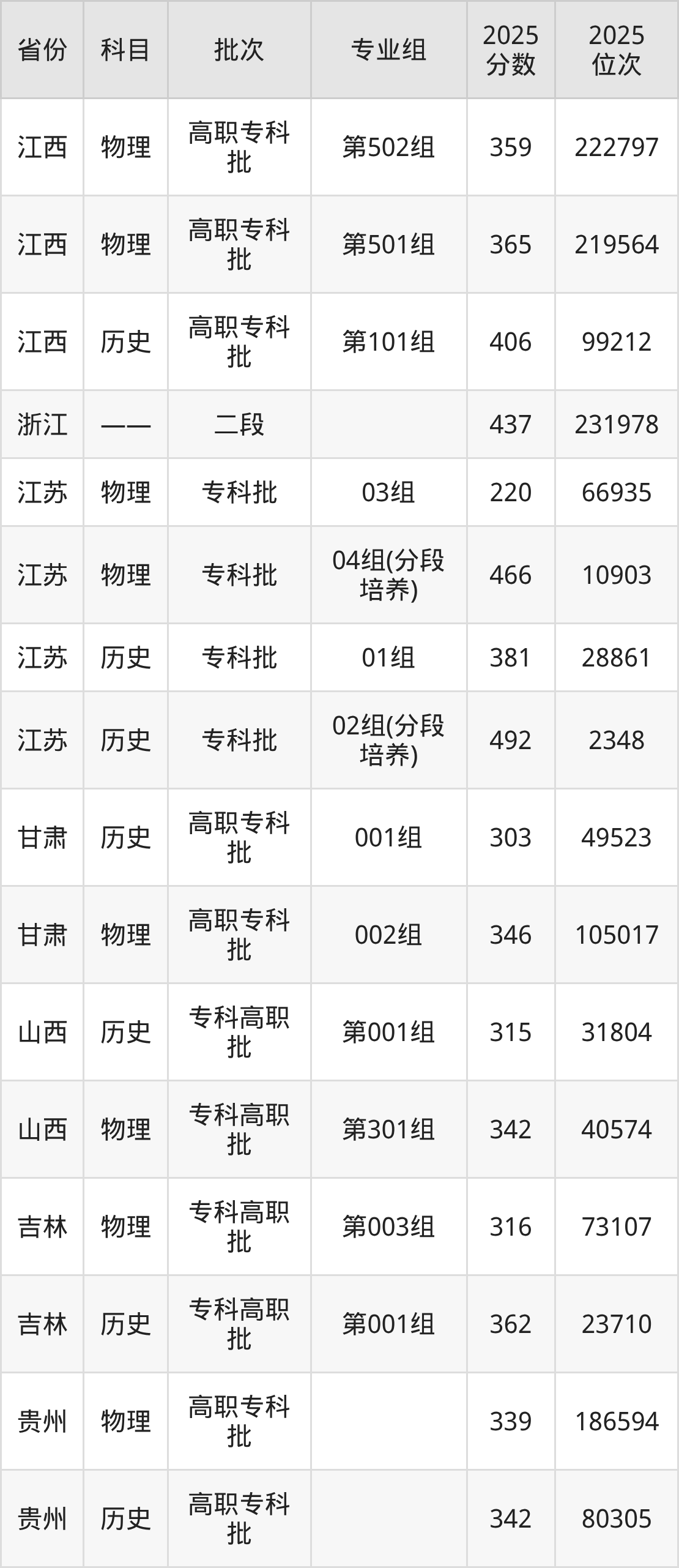下面是2025年常州纺织服装职业技术学院全国录取分数线一览表,请查阅。