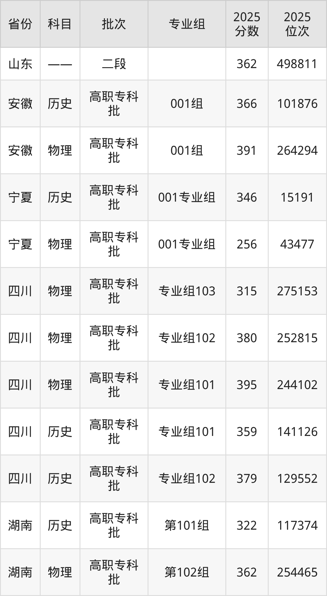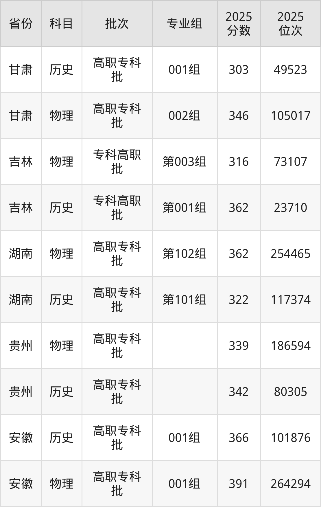 2025年投档录取最低分为342分,录取最低位次为80305名。