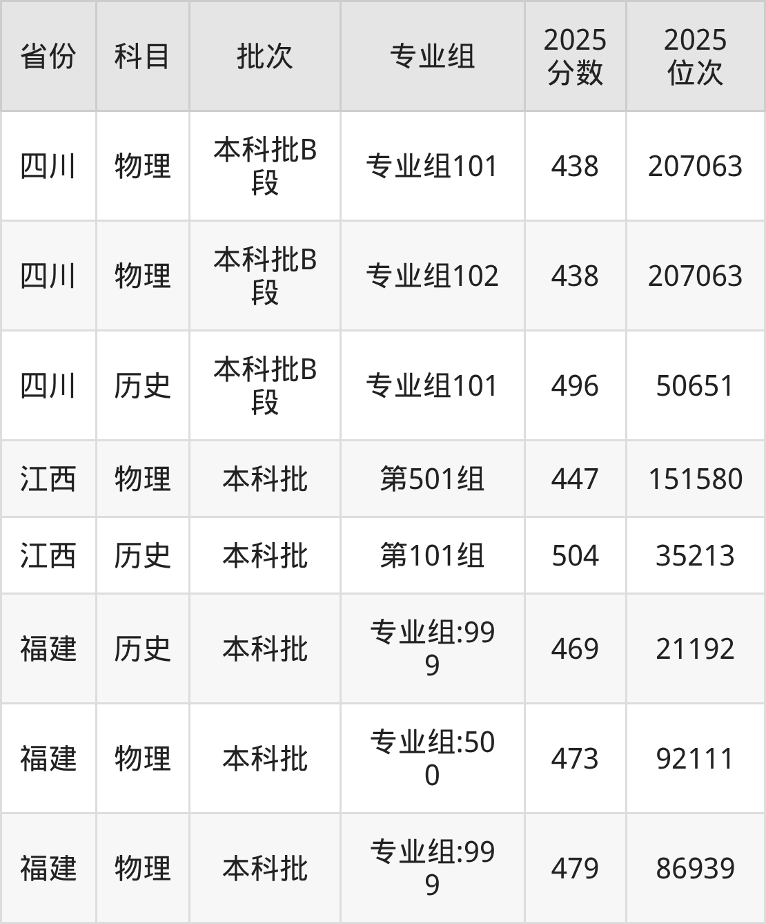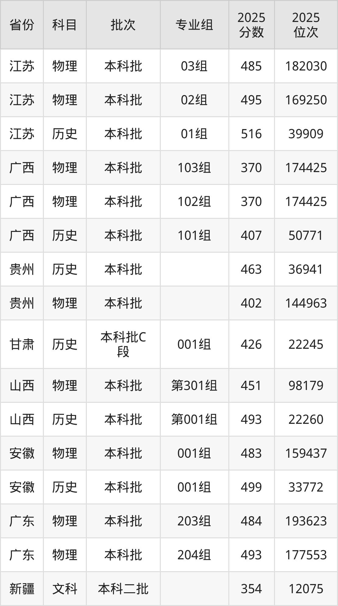 2025年在本科物理类进行招生,各专业组分数线详情如下: