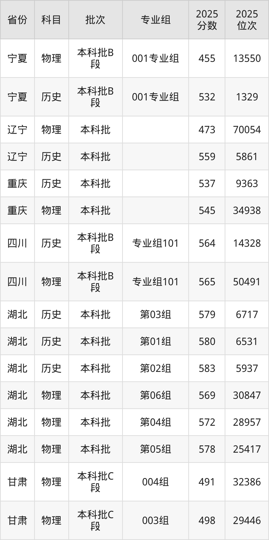 2025年投档录取最低分为449分,录取最低位次为4216名。