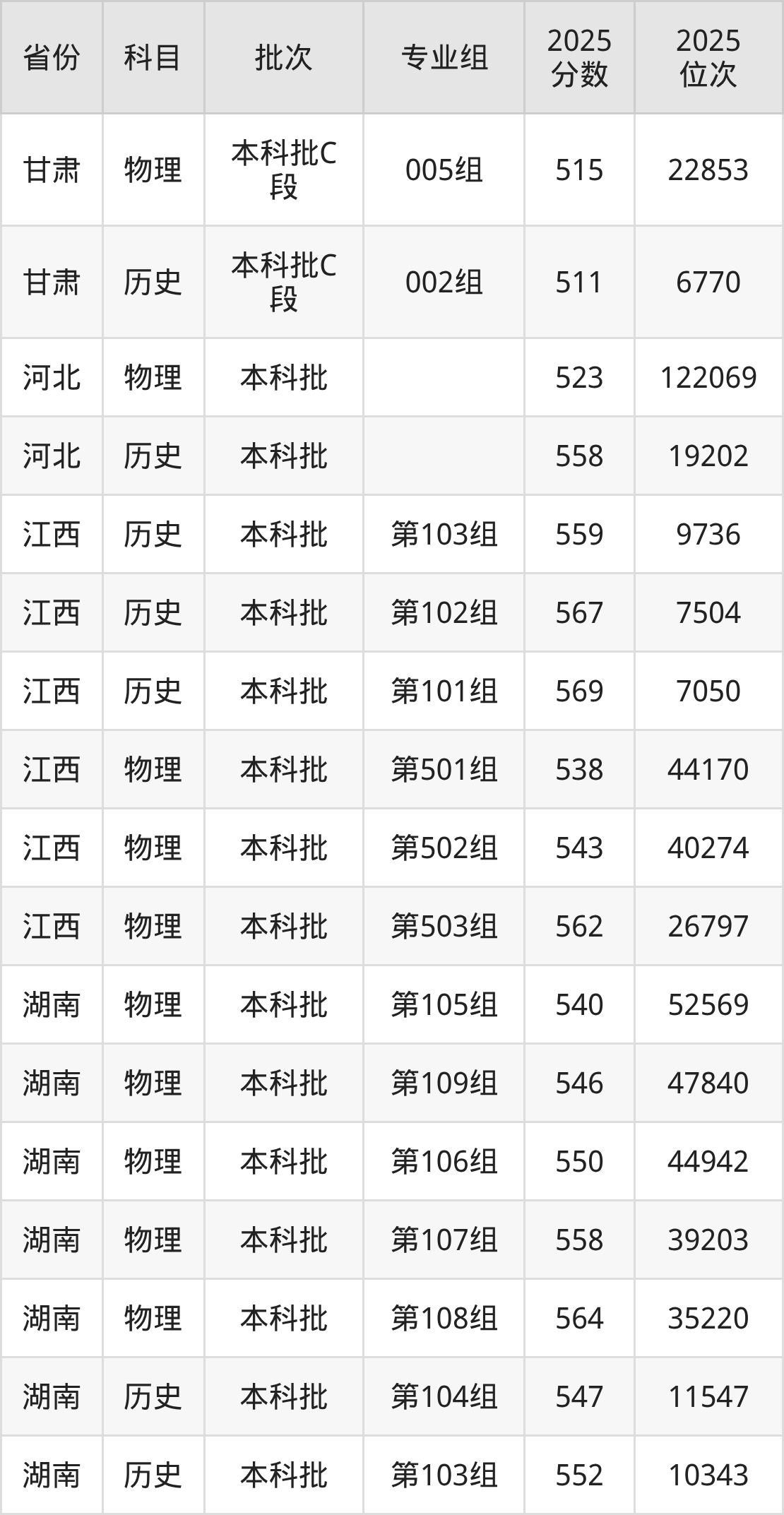 2025年投档录取最低分为514分,录取最低位次为17109名。