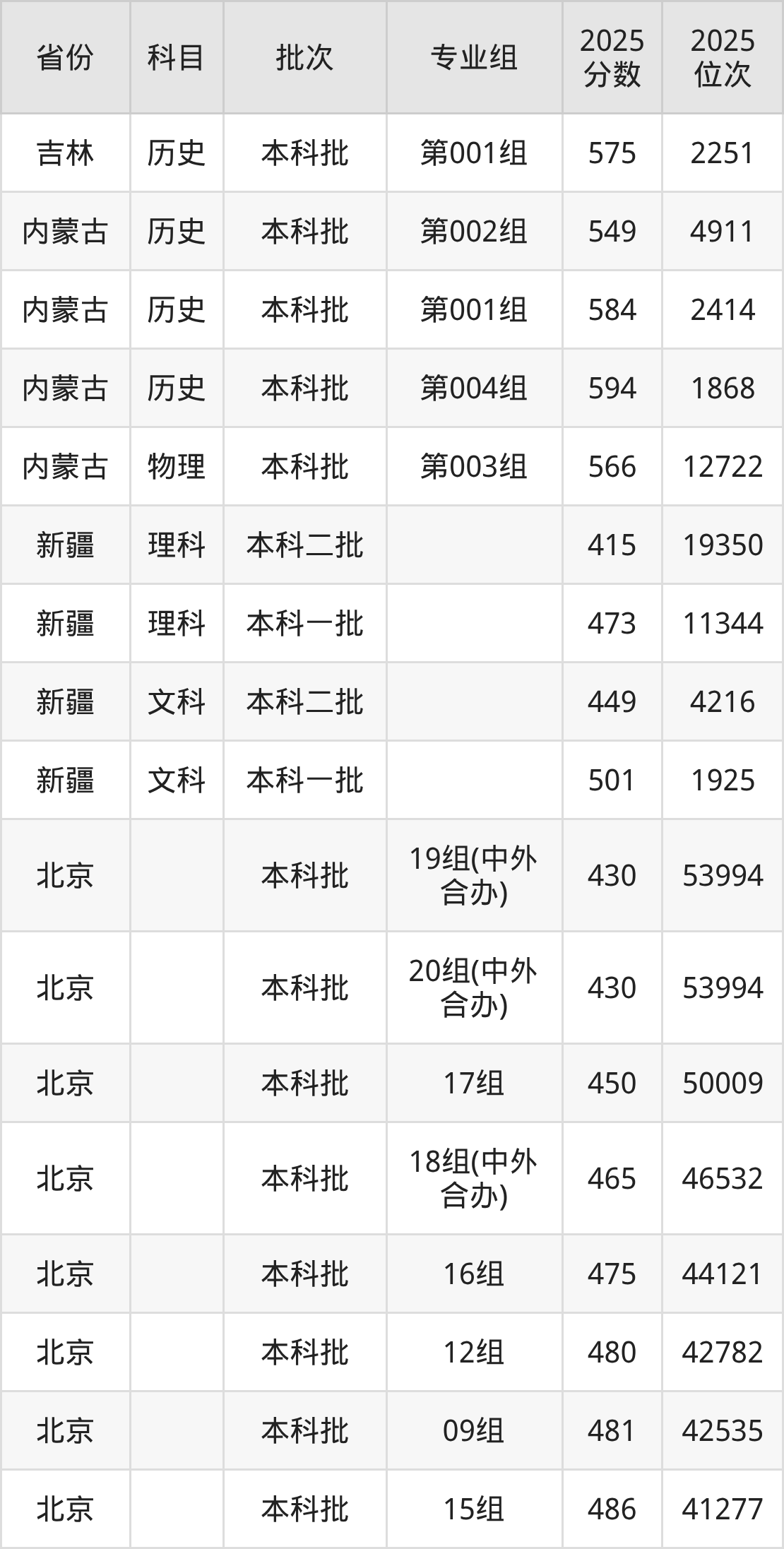 下面是2025年北京联合大学全国录取分数线一览表,请查阅。