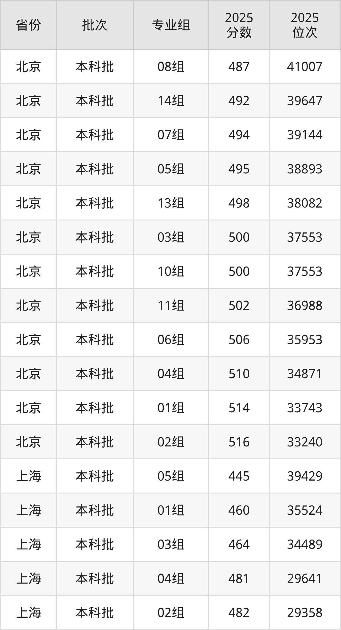 北京联合大学第001组:2025年投档录取最低分为519分,录取最低位次为5991名。
