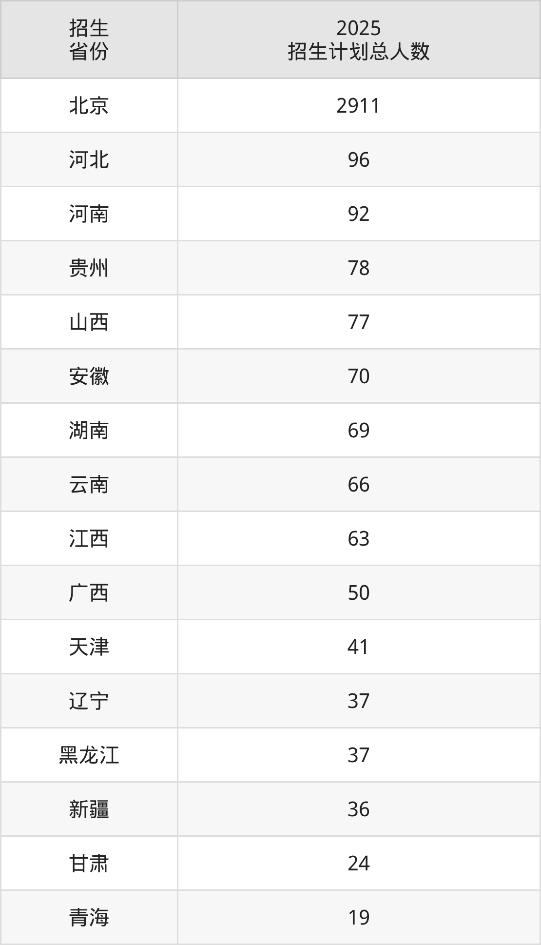 2025年北京联合大学面向全国28个省市开展本科招生;招生专业共57个,招生人数共3858人。2025年在北京市招生计划总人数是2911人,其中,北京联合大学在北京市招生人数最多的是金融学。北京联合大学在各省具体招生人数情况如下表。