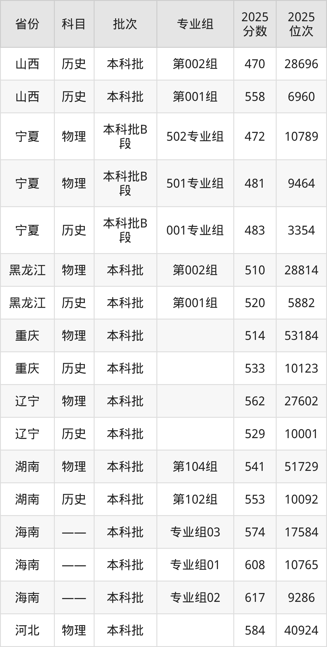 2025年投档录取最低分为529分,录取最低位次为10001名。