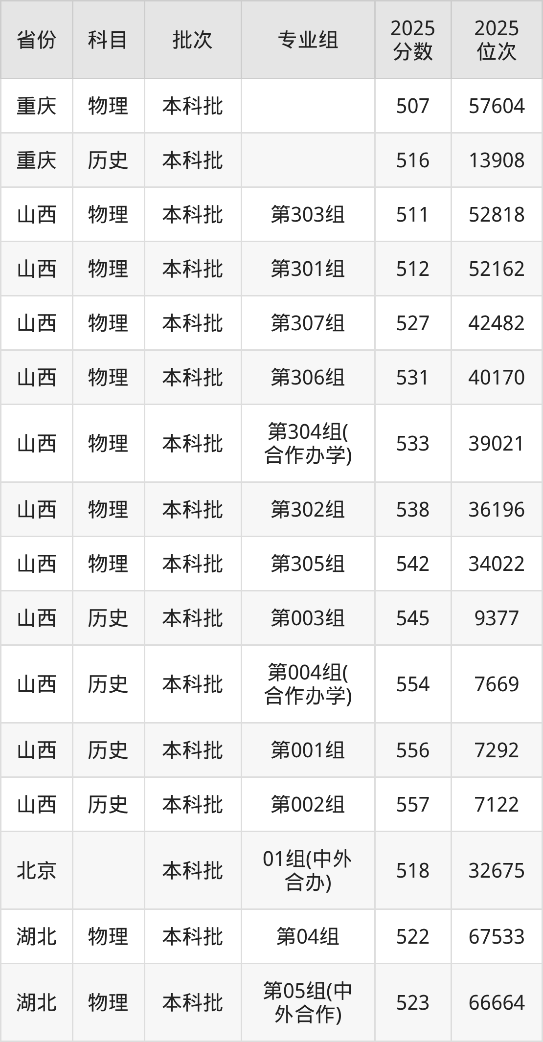 2025年投档录取最低分为507分,录取最低位次为57604名。