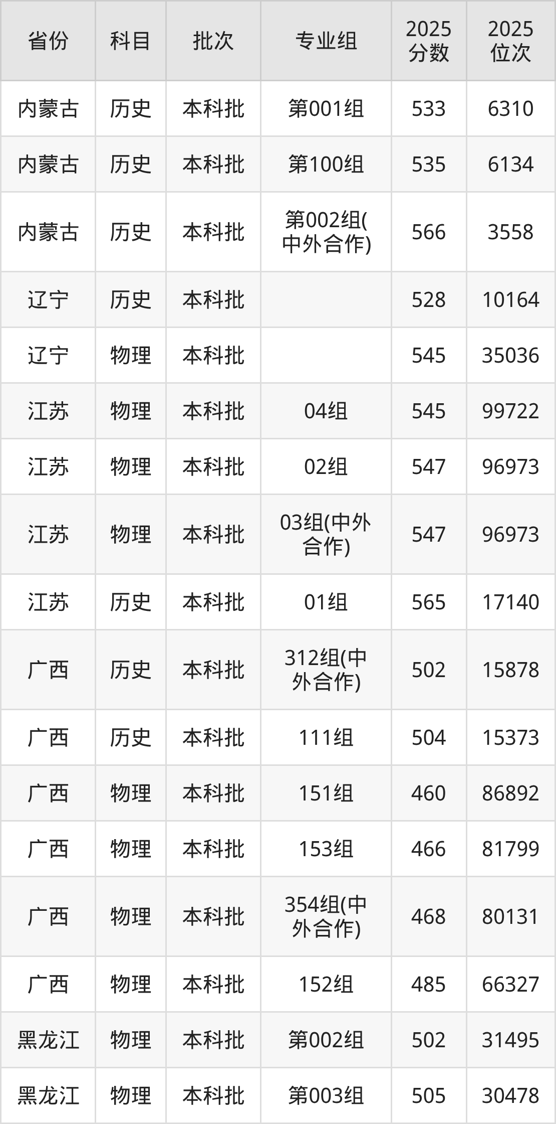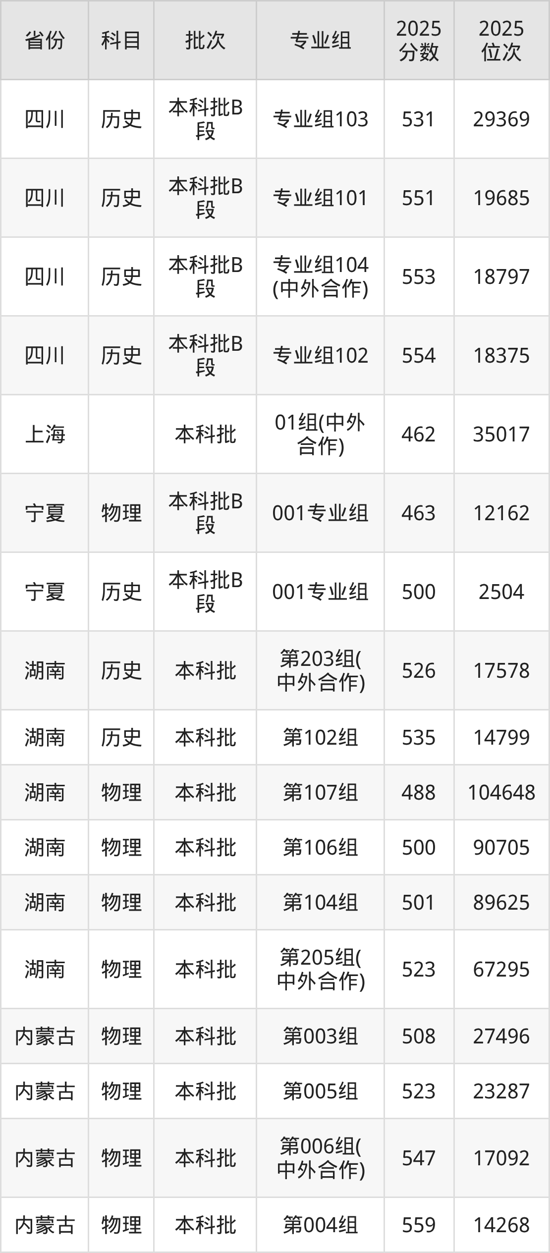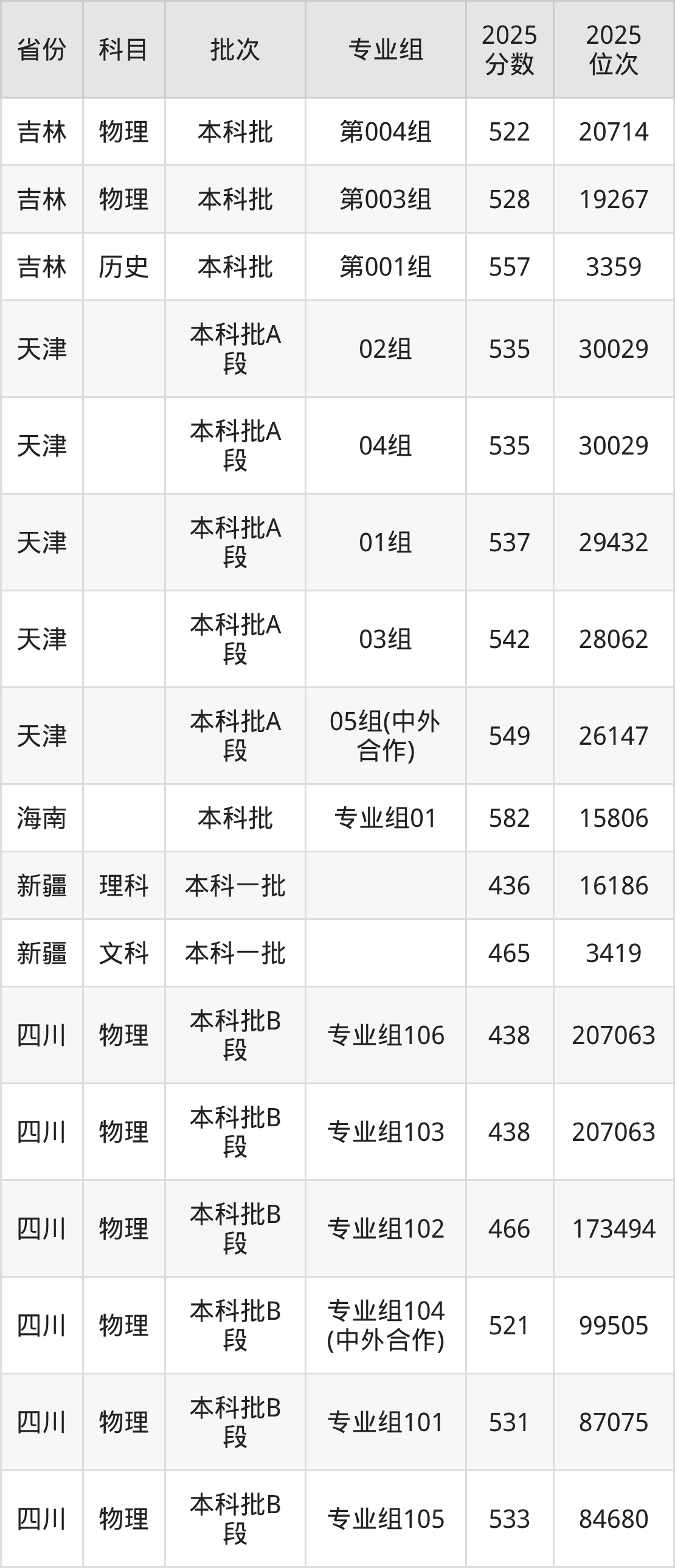 天津商业大学003组(中外合作办学):2025年投档录取最低分为542分,录取最低位次为16499名。