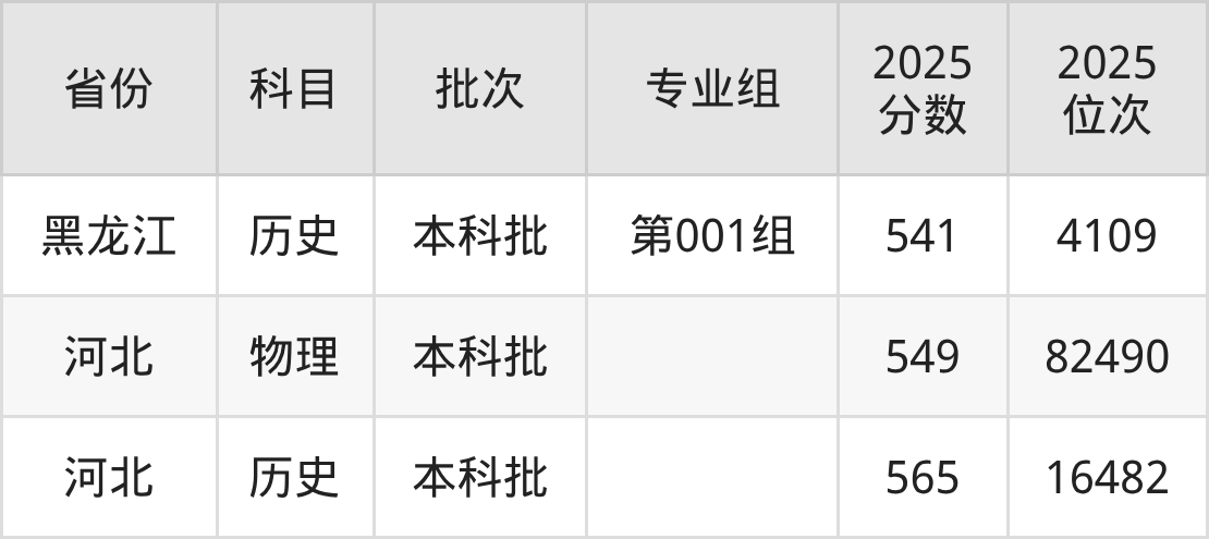 天津商业大学第001组:2025年投档录取最低分为541分,录取最低位次为4109名。