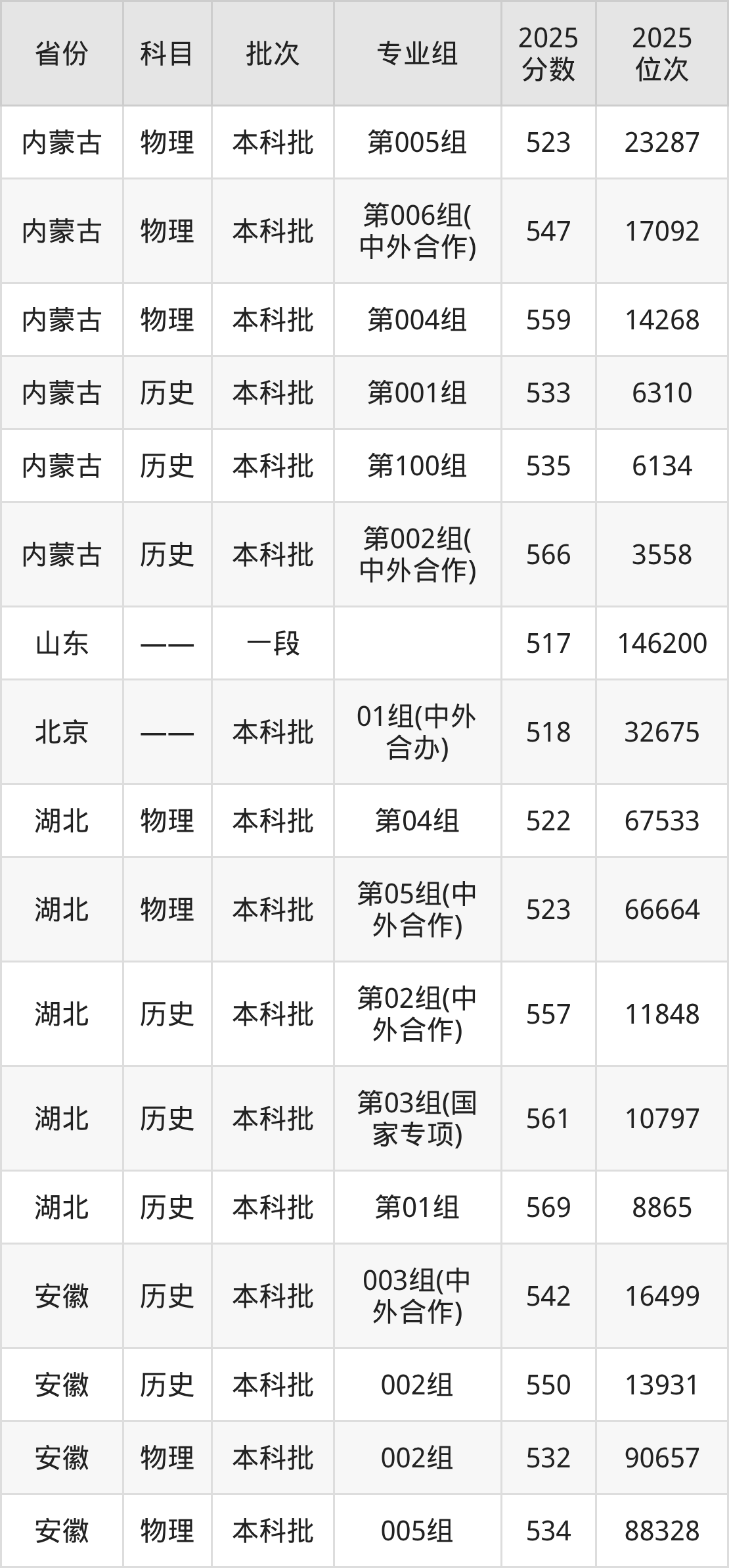 天津商业大学第201组(中外合作办学组):2025年投档录取最低分为558分,录取最低位次为22165名。