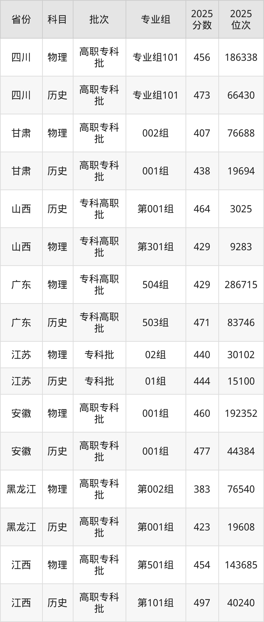 下面是2025年天津市职业大学全国录取分数线一览表,请查阅。