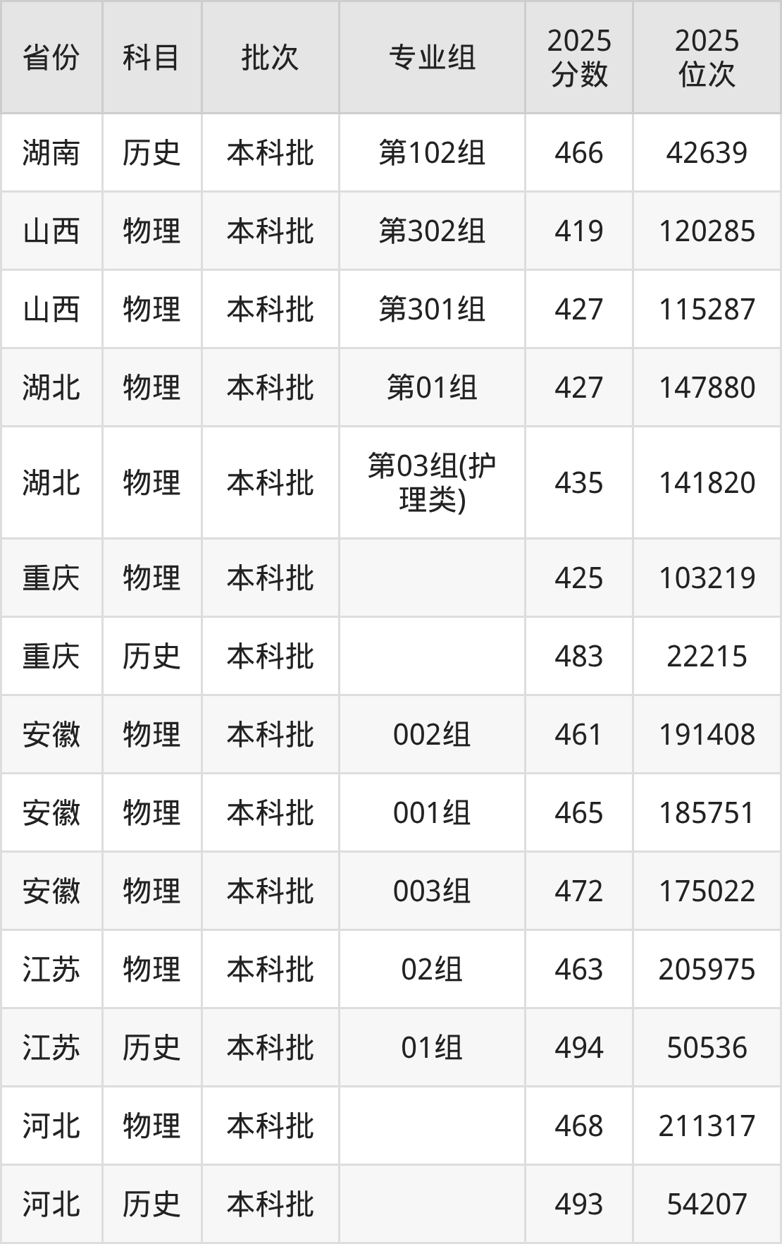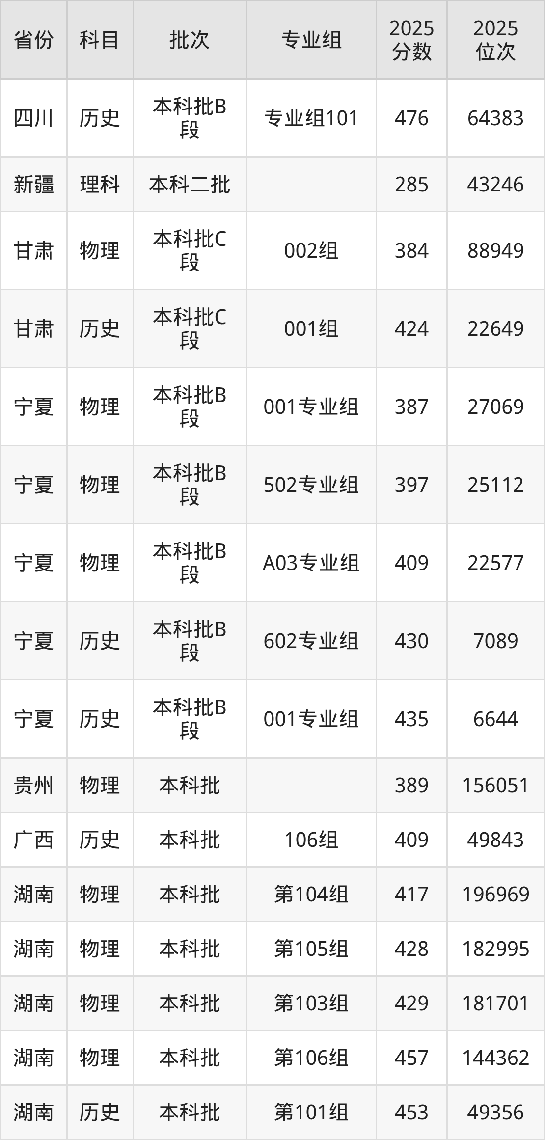 2025年在本科历史类进行招生,各专业组分数线详情如下: