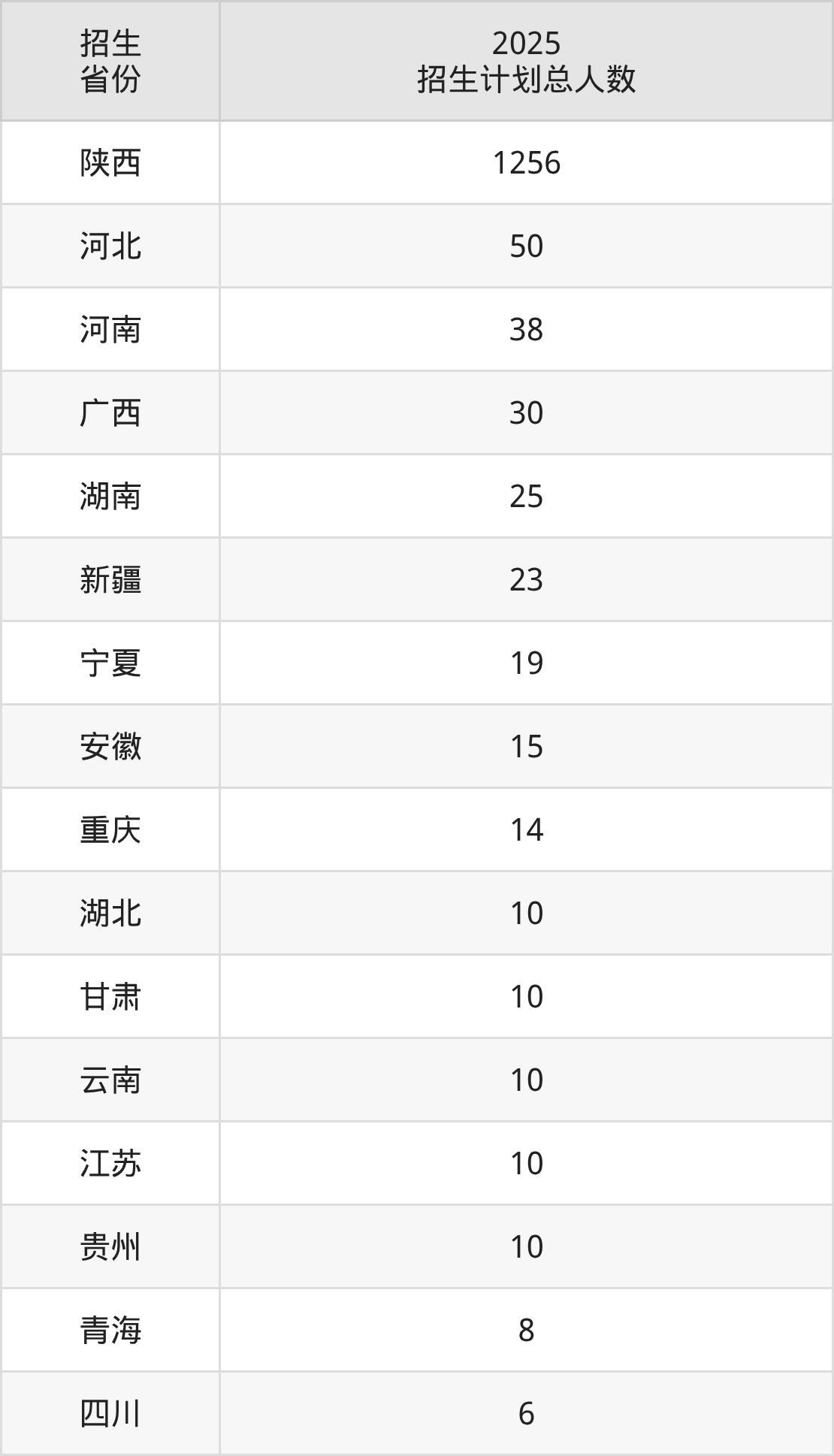 2025年延安大学西安创新学院面向全国17个省市开展本科招生;招生专业共17个,招生人数共1539人。2025年在陕西省招生计划总人数是1256人,其中,延安大学西安创新学院在陕西省招生人数最多的是汉语言文学。延安大学西安创新学院在各省具体招生人数情况如下表。