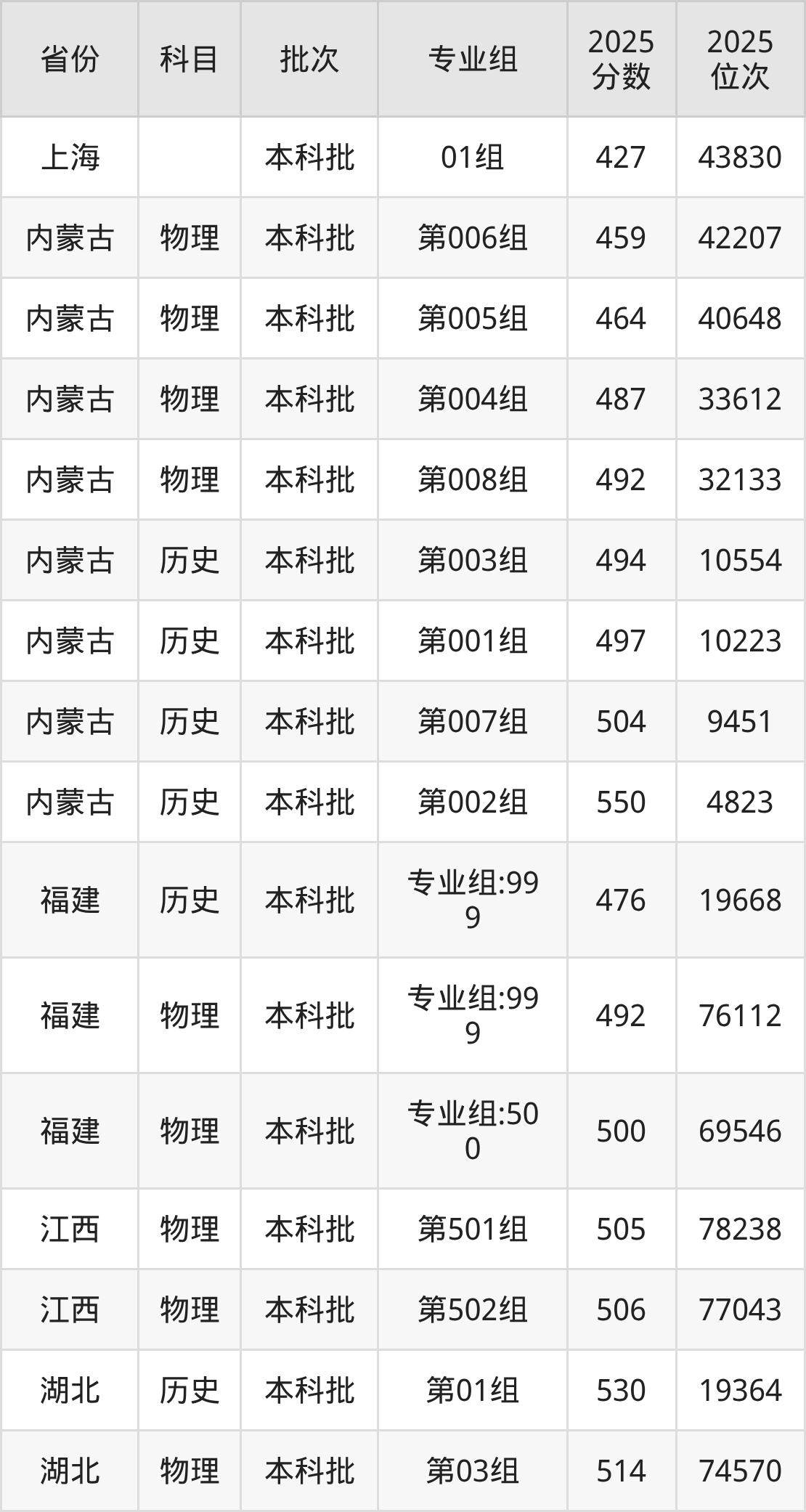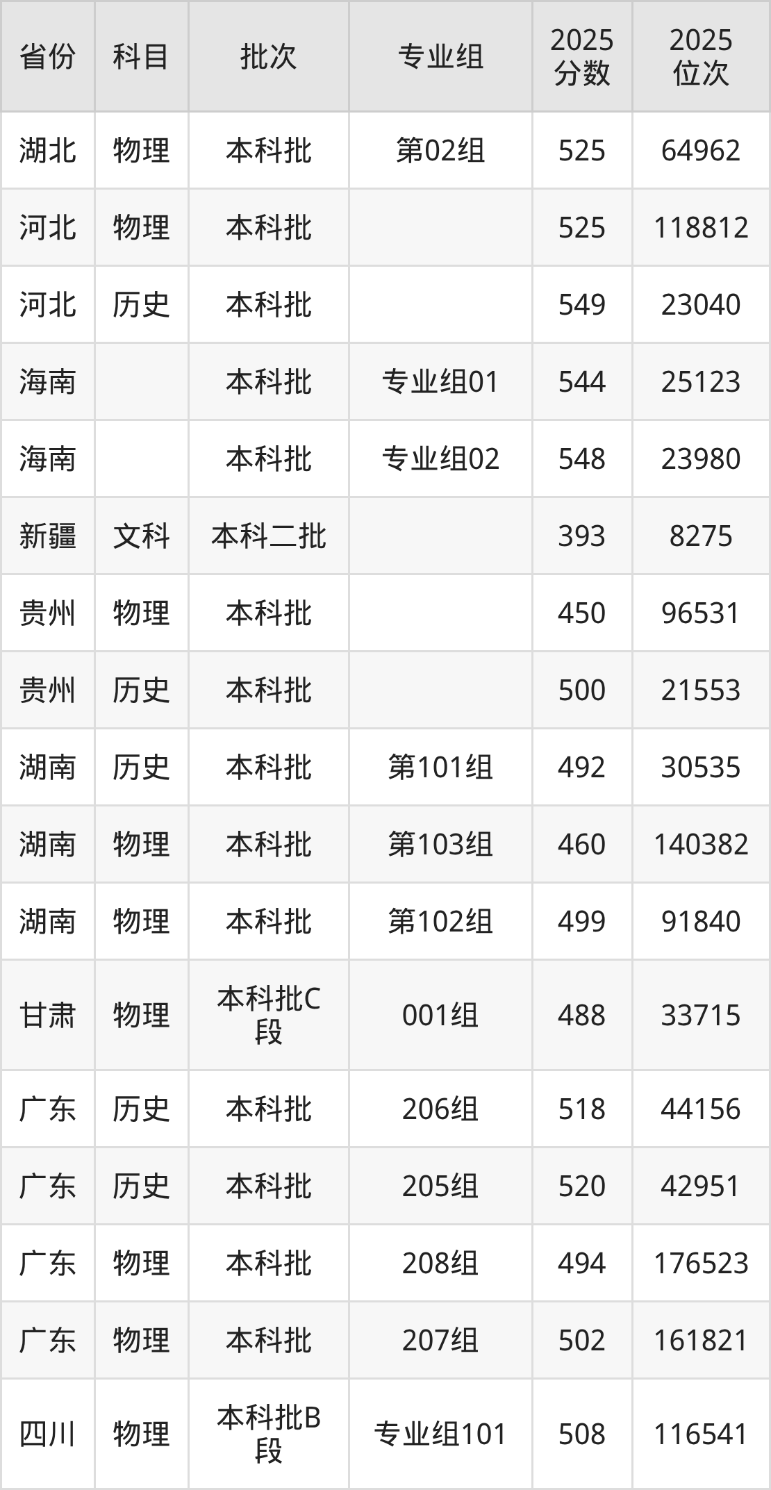 2025年投档录取最低分为495分,录取最低位次为65119名。