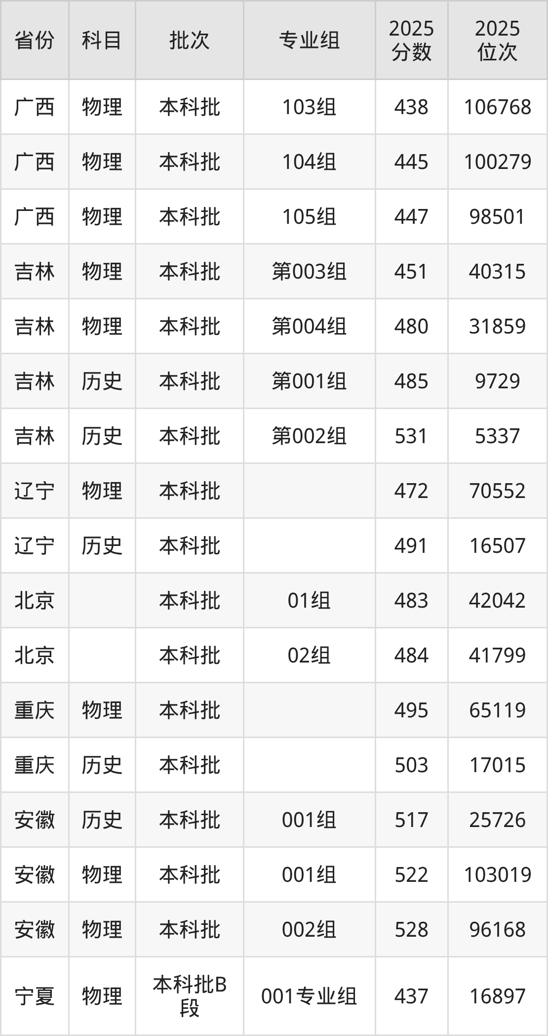 2025年投档录取最低分为503分,录取最低位次为17015名。